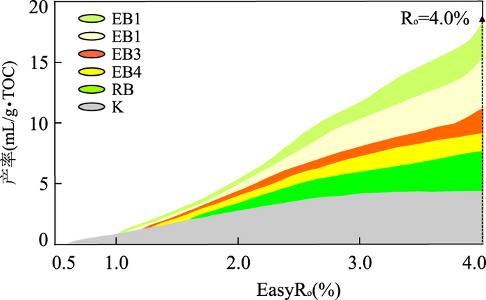 The evaluation system of shale hydrocarbon generation is mainly addressed in the static condition at present, ignoring the dynamic process of hydrocarbon generation. Consequently, the original hydrocarbon generation potential of the shale cannot be properly evaluated. In this study, a typically marine shale sample with relatively low maturity and its kerogen were artificially matured by a half closed pyrolysis system and a closed pyrolysis system. Samples with different maturity levels obtained from the two systems were then pyrolyzed for gas generation in sealed gold tubes (i. e., pyrolysis experiment in sealed gold tubes). The quantitative analysis based on the products of C1-C5 gases, C6-C12 light hydrocarbons and carbon isotopes of gases from the simulation experiments indicates that the generation process of methane in kerogen can be divided into four stages:oil-generation ( < 1.0% EasyRo), condensate-generation (1.0%-1.5% EasyRo), wet-gas-generation (1.5%-2.2% EasyRo) and dry-gas-stage (>2.2% EasyRo). Kerogen, expelled bitumen and residue bitumen contributes 22.7%, 57.6% and 19.6% of maximum yield of methane in shale, respectively. Abundant soluble bitumen still exists in the shale matrix after the hydrocarbon expulsion, which becomes the major source of shale gas by interacting with kerogen and insoluble bitumen at high maturity levels.
