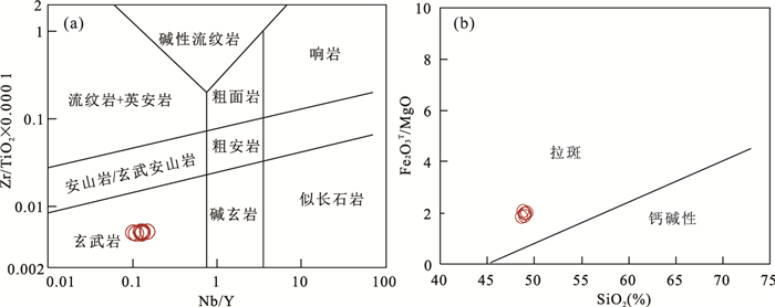The research on magmatic source and tectonic setting of Qingquangou basalts in eastern section of East Kunlun is important for discussion of the tectonic evolution of East Kunlun ocean. This paper presents a systematic field geology, geochemistry, and tectonic setting research. The results show that the SiO2 contents of Qingquangou basalts range from 48.60% to 49.28%, MgO contents range from 7.72%-8.00%, TiO2 contents range from 1.07%-1.10% (average values, 1.09%), which are similar to the values of Izu-Bonin-Mariana forearc basalt, West Pacific. The basalts are classified into the tholeiitic basalt of subalkaline series based on the major elements feature. Qingquangou basalts are characterized by the ∑LREEs range from 22.64×10-6-33.31×10-6, ∑HREEs range from 13.13×10-6-18.37×10-6, ∑REEs range from 36.02×10-6-51.68×10-6, and (La/Yb)N range from 0.88-1.10. The chondrite normalized REE patterns show the widely enriched-depleted feature of LREE, resembling the feature of NMORB basalts and IBM forearc basalts, West Pacific. Moreover, the samples have low ratios of Ti/Y (312) and Ti/V (< 20), also indicative of the forearc basalt feature. The primitive mantle normalized trace element spider diagram shows enriched LILEs and undifferentiated HFSEs (e.g., Nb, Ta, Zr, Hf, etc.) features. Petrogenesis research shows that its source was derived from the depleted mantle, and further proves that its partial melting degree is higher than that of NMORB-type basalts. Additionally, the tectonic discrimination diagram suggests that the basalts formed in forearc tectonic setting. Combined with the previous data, it is concluded that East Kunlun ocean began to subduct northward at Middle Cambrian (ca.510 Ma), and that Qingquangou forearc basalts were generated meanwhile, forming the nascent island arc crust.