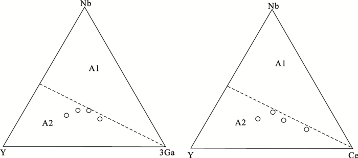 The research of petrogenesis about Tiangongshan Indosinian granites have great significance on the magmatic evolution and dynamic process in Southwest Fujian. The Tiangongshan pluton is dominated by syenogranite. Previous studies obtained the K-Ar age of 146-149 Ma from its granites, while U-Pb zircon analyses yielded consistent age of 233±2.0 Ma and 230±2.8 Ma by LA-ICP-MS in our study, indicating that the pluton was formed in Late Triassic and Indosinian tectonic movement. The granites are characterized by high silicon and alkali (σ=1.21-2.55, A/CNK=0.97-1.73), belonging to quasi aluminum to peraluminous calc-alkaline series. The granites have high ΣREE and relative accumulation of LREE, and are deficient in Al2O3 and Sr, and rich in Y and Yb, showing obvious micrographic texture with relatively high negative Eu anomaly and moderately negative to weak positive Ce anomaly; the granites are depleted in LILE and enriched in HFSE.The Tiangongshan pluton has the characteristics of A-type granite with high Ga/Al value. Its w (P2O5) averages on 0.02%, lower than that of highly fractionated S-type granite, w (Na2O) on average of 2.93%, higher than that of highly fractionated S-type granite, and w (TFeO) on average of 1.15%, higher than that of highly fractionated I-type granite.The average saturation temperature of zircon is 729.8℃.The εHf(t) all is negative (-5.29 to -10.69), suggesting possible material sources from the lower crustal material of Paleoproterozoic. The magma of the diagenetic stage, derived from partial melting of the crustal material, is crust-derived aluminous A-type granite formed in the syn-collisional settings. Through the stage of Indosinian collisional-compressional orogeny, the Paleoproterozoic lower crustal material of the pluton initially melted. Stretched by Indosinian tectonic movements, part of the mantle material was involved in the underplating.