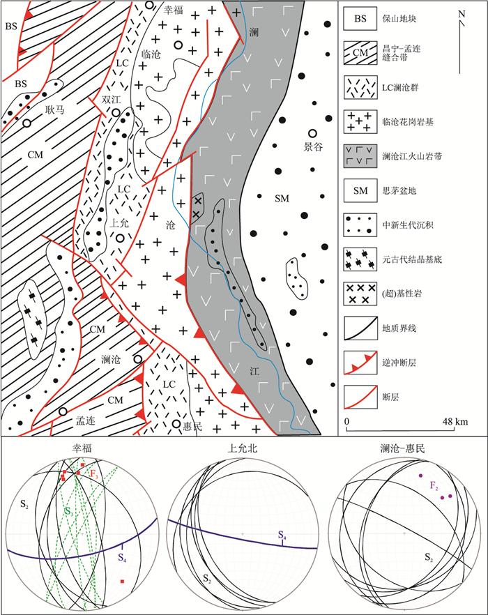 The determination of metamorphic deformation process in Lancang Group can reveal the evolution history of Lancangjiang tectonic belt. Based on the "tectonic-metamorphic" study of the medium-low glacial facies metamorphic rocks and the high-pressure metamorphic rocks exposed in the Shuangjiang-Huimin area, this paper presents the following findings on the metamorphic rocks in the Lancang Group:(1) the Fold cleavage S2 under the extrusion system is the regional foliation. The facies S1 represented by the quartz veins in the metamorphic rocks are consistent with the S0, and S1 is nearly parallel with S2 after the second stage. (2) The tectonic pattern and the metamorphic deformation period are basically the same in the resarch area, showing two-stage middle and deep tectonic stratigraphy in Permian-Triassic, which is shallow-surface deformation superposition of the Jurassic-Cenozoic. (3) The high-pressure metamorphic rocks record two periods of deep tectonic deformation, and the tourmaline and garnet have a distinct two-stage growth pattern. The core (M1aD1a) may represent the peak eclogite facies metamorphism, The edge represents the blue lithofacies (M1bD1b) stage during the exhumation process. The high-pressure metamorphic rocks are consistent with the tectonic level and deformation pattern of the second stage (M2D2) of the metamorphic rocks, which represents the process of the compressive stress after the exhumation process. Both shear-type cleavages S2 indicate that the upper disk shear sliding toward to cleavages. Combined with the Cenozoic Sanjiang area occurred near the 90° block rotation, the recovery of the second phase of the disk against the thrust of the role of E. By the 40Ar-39Ar dating of quartz sandstone muscovite in Xingfu area, phengite and blue amphibole in Xiaoheijiang, and reinterpreting the 40Ar-39Ar age of the blue amphibole in Xiaoheijiang, it is concluded that Lancang Group has 4 tectonic stages:(1) Metamorphism of blueschist facies in the first stage (D1b) of high-pressure metamorphic rocks, ~250 Ma. (2) The second phase (M2D2) is extrusion in the middle level, 215-214 Ma. (3) The shallow metamorphic rocks N-S to the longitudinal folds belong to the third stage (D3a):111.9-103.7 Ma with the late (D3b) thrust, ~82.28 Ma. (4) The fourth period near the E-W to the vertical fold:the new generation (probably later than 59.18 Ma).