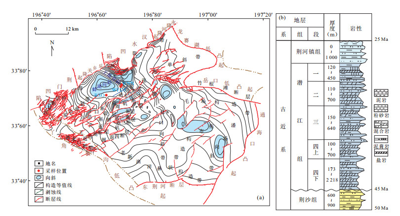 Research on the shale oil enrichment mechanism of Qianjiang Formation is lacking.The data of core image, rock pyrolysis, vitrinite reflectance, biomarkers, maceral composition, rock petrophysics, well logging, and XPT well test were used to analyze the quality of source rock, reservoir property, and preservation condition in this study.The kerogens are predominantly type Ⅰ-Ⅱ1.The vitrinite reflectance ranges from 0.51% to 0.80%.The maturity indicators of C29 sterane in the rocks from the 10th cyclotherm in the Wangchang are obviously different from that of the underlying halite, which indicates that there are migrated oil.The porosity of the reservoir ranges from 7.8% to 26.3%.The halite layers are thick enough (> 6 m) and stable throughout the area distribution; moreover, they did not break during the stage of deposition and burial.With the excellent preservation condition and storage capacity, the hydrocarbon generated from the deeper source rocks within the 10th cyclotherm controlled the shale oil enrichment in higher structural position, while hydrocarbon generated in-situ dominated in the lower structural position.