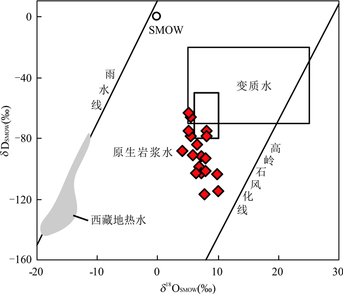 Jiagangxueshan W-Mo deposit, Shenzha County, is the first greisen-type W deposit in Tibet. Studying the deposit is of great significance in the regional metallogenic mechanism and prospecting. The mineralization is strongly linked with the monzogranite located in the center of the deposit, and ores usually occur in inner monzogranite or sedimentary wall rocks that are adjacent to the monzogranite. The orebody types of the deposit contain greisen-type and quartz vein-type. The majority of ores distribute in greisens and intensively greisenized monzogranites in the form of veinlets or dissemination, while the minority mainly precipitated in the sedimentary wall rocks, presenting as wide quartz veins. To investigate the sources of ore -forming fluids and materials of Jiagangxueshan W -Mo deposit, wolframites and quartzs, metal sulfides from greisen-and quartz vein-type orebodies are sellected for H, O and S-Pb isotope analysis, respectively. δ18OV-SMOW (‰) values of wolframite of the deposit range from 3.7-4.7. The hydrogen and oxygen isotope compositions of the quartzs selected from ores show that the δ18Owater values of quartzs are ranging from 2.0‰-4.3‰, with the δD values range from -131‰ to -84‰. The H-O data indicate that ore-forming fluids were derived from residual magma water after degassing. δ34S values of the sulfides range from +2.2‰ to +5.3‰, indicative of a magmatic source of sulfur. The values of 206Pb/204Pb、207Pb/204Pb、208Pb/204Pb are 18.582 2-18.797 1、15.671 7-15.760 6、39.462 5-39.501 2, respectively, which further show that the ore-forming materials were derived from Precambrian metamorphic basement of the central Lhasa subterrane.