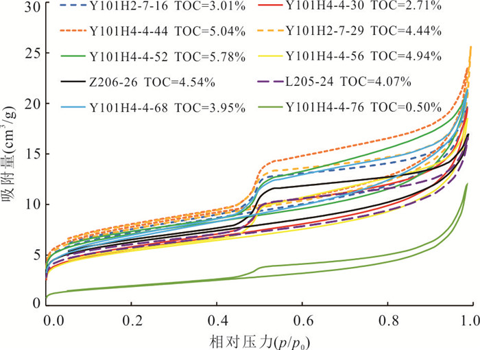 Pore distribution of shale is a key parameter of the shale reservoir, and it is important to estimate shale gas resource reserve and for shale gas exploration and development. To characterize the pore apertures of deeply buried Wufeng-Longmaxi shale in the Luzhou district, carbon dioxide and nitrogen adsorption, high pressure mercury injection and helium expansion porosity were used, combined with the oxidation-reduction condition during the deposition, moisture and TOC. The data show that mesopores were main pore types, accounting for 73% of the total pore volume on average, followed by micropores of 23%, and macropores of 4%. Pore volume changed regularly with the deposited oxidation-reduction environment, and the TOC contents dominantly controlled the pore distributions and pore volumes, especially obvious for pores of less than 10 nm in diameter. Moisture could occupy some pores, and reduce the pore surface area and pore volume, with decrease amounting to 30%. Therefore, pore distributions were jointly controlled by oxidation-reduction condition, TOC and moisture.