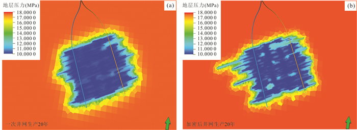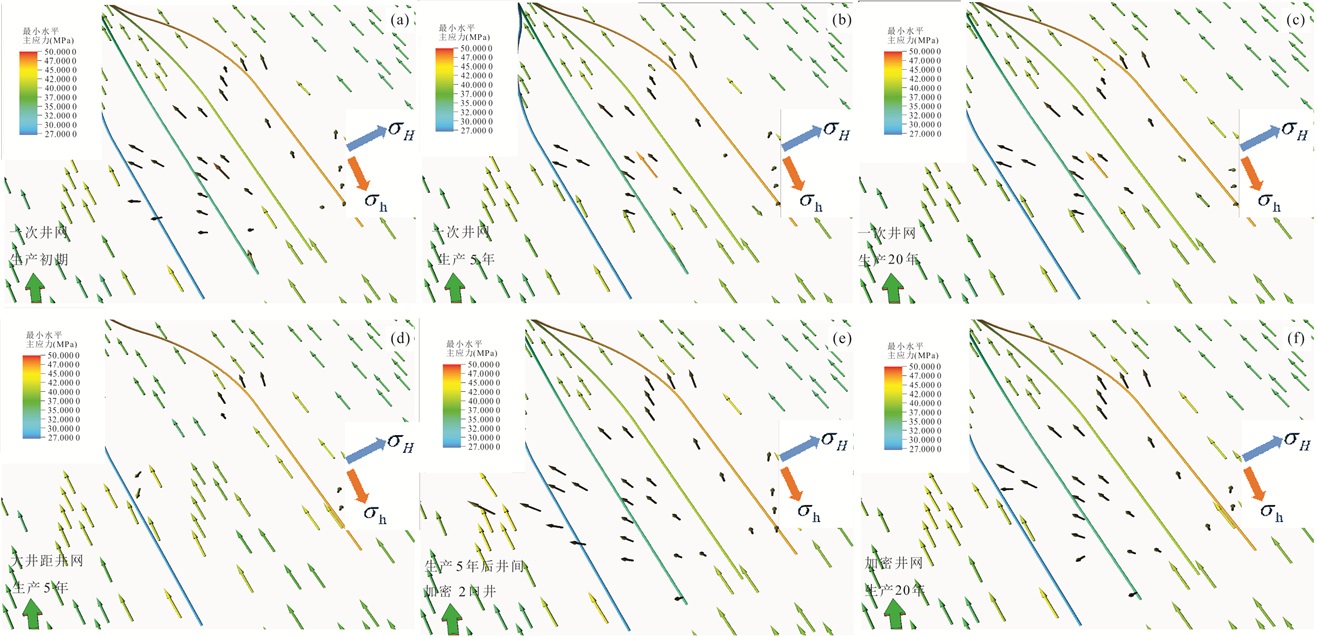 The shallow shale gas in the Zhaotong area has a wide distribution and large geological reserves, with a large development potential. To realize the efficient production and resource utilization of shallow shale gas in the Haiba backslope of the central area, based on the experience of the Taiyang backslope, the feasibility of the stereoscopic development of shallow shale gas in Haiba and the deployment of the well pattern were explored, based on the geology-engineering integration concept and research workflow. The research result shows that the best target for single-layer development is still the Long 111 layer, and the Wufeng Formation does not have the conditions for economic development as an independent development layer system under the current process technology and economic index, and further exploration is still needed. The thickness of Class Ⅰ+Ⅱ high quality reservoir between Long 111 layer + Long 113 layer is large, compared with the development of Long 111 single layer, using Long 111 minor layer + Long 113 layer with stereoscopic staggered well pattern in the same well spacing and number of wells, the platform EUR and IRR are greatly increased. Under the same control area conditions, there is an optimal interval between well spacing and well number, and 250 m is recommended as the best well spacing under the current technology and economic index; if the well construction cost decreases, there is a potential to further reduce the well spacing and improve the overall EUR of the platform. Large-scale hydraulic fracturing will not only change the in-situ stress magnitude, but also change the horizontal principal stress direction, thus changing the stress state in the near-well zone from a walking-slip to a reverse-fault state, and adversely affecting the hydraulic fracturing due to T shape fracture. One-time well deployment can effectively reduce negative inter-well stress interference and improve the degree of inter-well reserve utilization compared to the infill well pattern deployment. In conclusion, the development of shallow shale gas in Haiba is suitable to adopt a stereoscopic staggered one-time well pattern with small well spacing, promoting the development of Zhaotong area shallow shale gas in a cost-effective way.