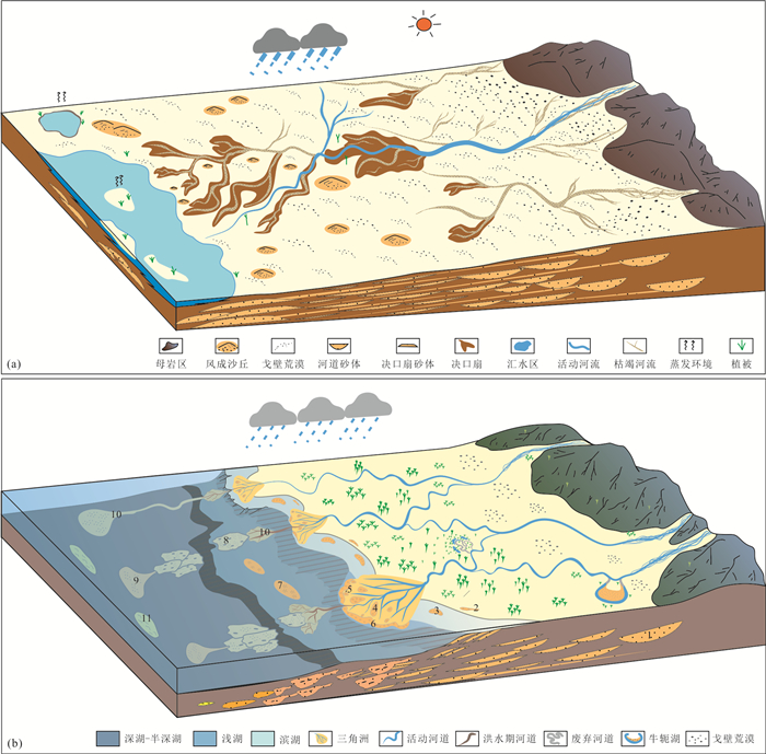 The Ordos Basin is one of the main petroliferous basins in China. The Triassic Yanchang Formation is the main oil-bearing units in this basin. Based on the investigation and study of typical outcrops of Yanchang Formation and the data of paleontology, lithology and lithofacies, three new insights are obtained. (1) The paleoclimatic environment of Yanchang Formation during the sedimentary period has been recovered, which is considered to be tripartite, and the Ladinian Age was an arid environment. During the Carnian Age, the climate changed to a warm and humid environment because of the Carnian Pluvial Episode (CPE). In the Norian-Rhaetian ages, the climate environment changed to semi-arid and sub-humid again. (2) The CPE changed the way of sediment transport and deposition in the Yanchang Formation. In the dry environment period before and after the CPE, the seasonal river, crevasse splay and crevasse channels caused by rainstorm and flood were mainly developed. During the CPE and in the mid-Carnian period, terrigenous detrital materials were transported to the underwater environment mainly by various gravity flows such as turbidity flow, sandy debris flow and hyperpycnal flow, forming sandy event deposits. At the same time, controlled by the CPE, black organic-rich shale event deposits were also developed in the deep water environment. (3) Two sedimentary models of arid and humid environments were established in the Yanchang Formation. In the former, the catchment area in the arid environment was small, and the main sedimentary units were flood plain, seasonal channel, crevasse splay, crevasse channels and so on. In the latter, the catchment area of the humid environment is large, and the complete continental fluvial, delta-lacustrine and gravity flow sedimentary system is developed. Due to the stable long-flowing water, the channel is relatively fixed, the sedimentation mode is mainly progradation, supplemented by retrogradation, and not obvious aggradation. The study is of practical value to the discussion of how the large depressed lake basin formed and evolved in the Yanchang Formation, sedimentary sequence evolution, and petroleum exploration, and it is also significant to the study of the sedimentological records in inland lake basins generated by global extreme climate events in the Late Triassic Epoch to understand the sedimentary responses of the Carnian Pluvial Episode in the Pangea at the east margin of the Paleo-Tethys.