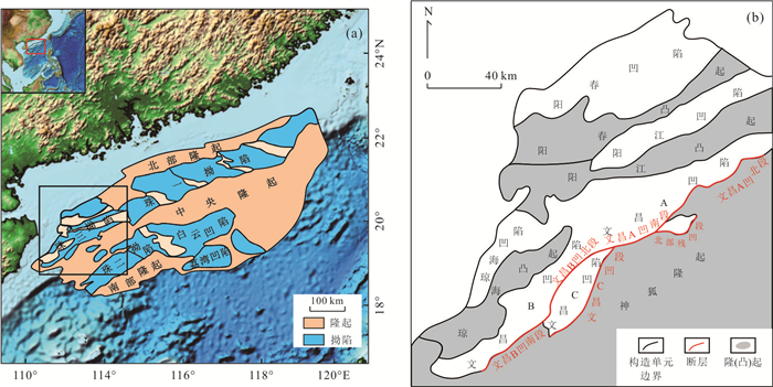 In order to clarify the segmentation of the Cenozoic development and evolution and reveal the dynamical genetic mechanism of the southern fault zone in Zhu-3 depression, we analyze the geometric and kinematic features of the southern fault zone, and discuss the response of the segmental evolution of the southern fault zone to the regional tectonic background in conjunction with the results of previous research. The results show that there are obvious segmentation in the southern fault zone, and there are differences in the geometry, combination with secondary faults, and sedimentary stratigraphy of the descending plate in different segments, which can be divided into two branches and six segments. The Cenozoic tectonic evolution of the southern fault zone can be divided into three stages: reactivation in segment and grew in isolation with relatively weak activity during Paleocene-Middle Eocene; the fault activity increased and gradually connected, and the Wenchang C sag segment stopped activation and the Wenchang B sag northern segment underwent tectonic inversion during the Late Eocene-Oligocene; the fault activity decreased significantly and the segmentation reappeared and gradually died out from the Miocene to present. The complex tectonic movement such as the subduction direction and rate change of the Pacific plate, the collision of the Indian-Eurasian plate, the wedge of the Philippine Sea plate, the subduction and extinction of the ancient South China Sea and the expansion of the new South China Sea led to the change of the Cenozoic regional extension direction of the northern continental margin of the South China Sea. The segmentation of the Cenozoic development and evolution characteristics of the southern fault zone reflects the joint control of the pre-existing fault system in the Late Mesozoic and the change of the Cenozoic regional extension direction.