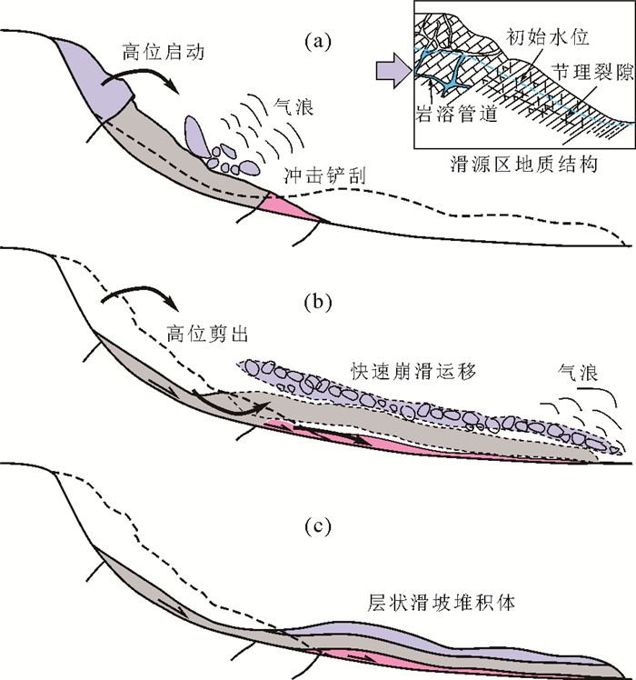 The Duolasi landslide is a super-large scale ancient landslide located in the Nu River tectonic mélange belt, which is characterized by the combination control of typical geological structure and special lithology. In this paper, several technical means, such as field investigation, geophysical exploration, unmanned aerial vehicle mapping, geo-mechanics and chronological testing, were applied to reveal the prone sliding geological structure, multi-stage development characteristics and high-position initiating mechanism of the Duolasi landslide. The results show follows: (1) The thick-bedded marble and ophiolite are stacked alternately and the corresponding clay-altered zone is an important prone-sliding geological structure of the Duolasi landslide. The altered clay is an important factor to the high-speed and long run-out of the landslide. (2) The Duolasi landslide has the characteristics of multi-stage activity, and can be divided into the main sliding body area, the secondary sliding body area and the modern colluvial area. The formation age of the main sliding body is 19.4±2.8 ka, and that of the secondary sliding bodies is 4.24±0.35 ka. (3) The high-position initiating process of the main landslide is closely related to factors such as steep slope landform, multi-permeable karst structure, weak base effect of altered clay, and seismic dynamic triggering. (4) The main landslide presents a pseudo-stratigraphic pattern of layered accumulation, i.e., coarse boulders in the upper part and fine-grained materials in the lower part, indicating that the overall landslide is mainly shear motion, and the material in the upper part of the landslide moves faster than the material in the lower part. The above understanding can provide a reference for the formation mechanism research and risk control of large scale landslides in the tectonic mélange belt on the east Tibetan plateau.