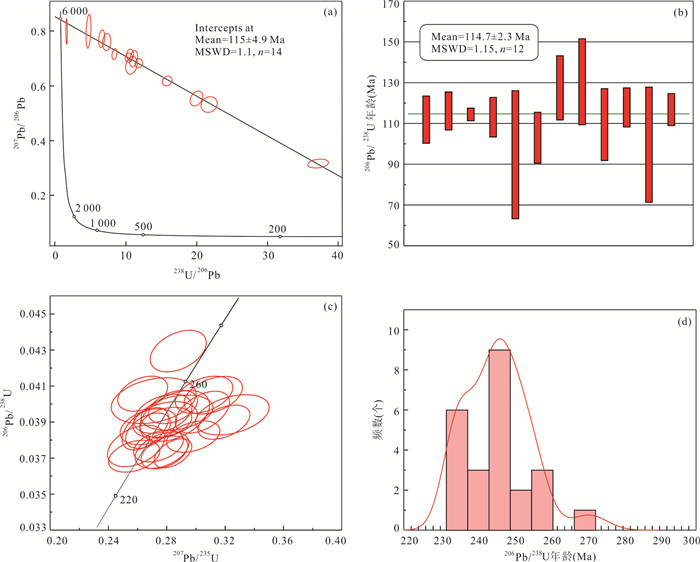 The spatial and temporal distribution of Mesozoic mantle-derived magma in South China is closely related with the metallogenic model of the granite-type uranium deposit. However, it has always been an important yet difficult issue of studies to explain the origin of zircon in mantle-derived magma and clarify the emplacement age of mantle-derived magma. Focusing on a newly discovered mantle-derived pyroxene diorite in the Huichang area, southern Jiangxi Province, this paper presents a systematic study on its mineralogy, mineral geochemistry, chronology and bulk geochemistry. The Huichang pyroxene diorite is characterized by SiO2 contents of 55.74%-57.71%, and enrichment in LREE and LILE, and depletion in HREE and HFSE. Apatite belongs to fluoroapatite, and the intercept age (115±4.9 Ma) and weighted mean 206Pb/238U age (114.7±2.3 Ma) of apatite represent the crystallization age of Huichang pyroxene diorite. While, the zircons have 206Pb/238U age of 233-271 Ma and εHf(t) value of -3.0 to -1.4, which indicate the captured zircon from Ⅰ-type granite. Combined with the previous regional geological data, the South China block was mainly in a compression environment in the Indosinian, forming a large number of S-type and Ⅰ-type granites. In the Cretaceous, the South China block was mainly in an extensional environment, and multiple stages of mantle-derived magmas underplating events occurred. In the extensional environment, meteoric water and mantle-derived fluids brought sufficient mineralizers such as O2 and CO2, which provided important conditions for leaching uranium from source bed and finally forming the uranium deposits.