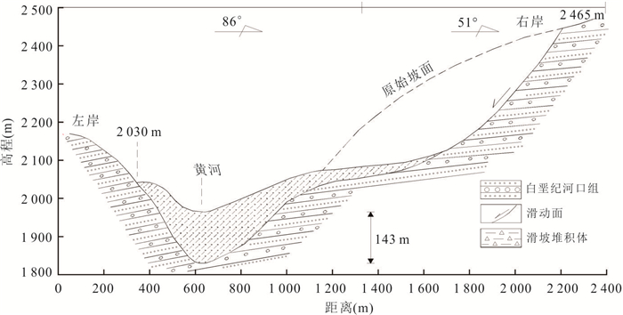 This paper takes the Holocene Gelongbu ancient landslide blocking the river outburst flood geological disaster chain as an example, using field surveys, PFC3D landslide dynamics numerical simulation and HEC-RAS outburst flood simulation to reproduce the whole process of the landslide slip-blocking-break disaster chain. It is found in field investigations that the total volume of Gelongbu landslide is about 7.92×107 m3, the main sliding direction is NW335°, the maximum sliding distance is 2.3 km, and the maximum accumulation thickness is about 150 m. The materials at the front edge of the landslide are looser than those at the back edge, and the degree of fragmentation is higher. The numerical simulation shows that the sliding process of Gelongbu landslide lasts for 103 s, and the maximum velocity can reach 57 m/s. In the sliding process, the kinematic characteristics of the sliding process showed regional differences in the degree of fragmentation. Most of the particles maintained their original positions during the motion, and the accumulation material consisted of individual particles and block clusters with relatively weak fragmentation. The landslide blocked the Yellow River and formed a barrier dam as high as 143 m at the saddle point and elevations of 2 030 m on the left bank and 2 063 m on the right bank. The area of the landslide accumulation body is approximately 1.8×106 m2, forming an upstream reservoir with an area of 128 km2 and a storage capacity of 4.87×109 m3. By simulating the flood evolution process under different degrees of dam break (15%, 25%, 50%, and 75%), it was observed that the outflow from the breach rapidly increased to a peak within 30 minutes, followed by a gradual decrease in velocity. The peak outflow from the breach at different levels of dam break were 15 137.9 m3/s, 52 192.9 m3/s, 157 375.5 m3/s, and 326 703.6 m3/s, respectively. The peak flood discharge and water level characteristics at various downstream sections were analyzed. The relationship between flood evolution and the Lajia Site is discussed. It is found that the peak discharge of the burst flood is 57 782.3 m3/s when the dam breaks at 25%, and the water depth at the Lajia Site is 27.1 m, which is 6.1 m above the ancient surface of the site. When 75% of the dam breaks, the maximum flow to Erlitou Site was equivalent to the once-in-100-year flood flow of the Yellow River.