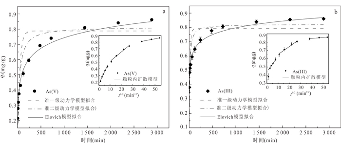 High arsenic groundwater is widely distributed in China, and it is of great significance to develop green and efficient arsenic removal materials for the sake of regional development and safety of drinking water for residents. In this study, the fly ash modified with manganese dioxide (MFA150) was prepared using co-precipitation method combined with NaOH hydrothermal process, to investigate its adsorption of As(Ⅲ) and As(Ⅴ) in groundwater. The results show that the vitreous structure of the raw fly ash was destroyed to generate zeolite phase in NaOH hydrothermal process, and the specific surface area of fly ash increased from 1.30 m2/g to 40.26 m2/g. After loading MnO2, the specific surface area of the adsorbent further increased to 148.82 m2/g, and the content of -OH on the surface was significantly increased to provide more adsorption sites for As(Ⅲ) and As(Ⅴ). The adsorption of As(Ⅲ) and As(Ⅴ) was in accordance with the Elovich model and the Freundlich model. The adsorption capacities of MFA150 for As(Ⅴ) and As(Ⅲ) under neutral condition were 2.55 mg/g and 9.71 mg/g, respectively, and showed stronger adsorption ability under acidic condition. Coexisting HCO3‒ and PO43‒ inhibited the adsorption of As(Ⅲ) and As(Ⅴ), while SO42‒ slightly promoted the removal of As(Ⅲ) and As(Ⅴ). In simulated groundwater, the removal rate of total As reached 91.90% by MFA150. Since preparation of MFA150 is simple and the raw material is cheap and easy to obtain, MFA150 is expected to be used in the treatment of the high arsenic groundwater owing to the better adsorption performance for As(Ⅴ) and As(Ⅲ).