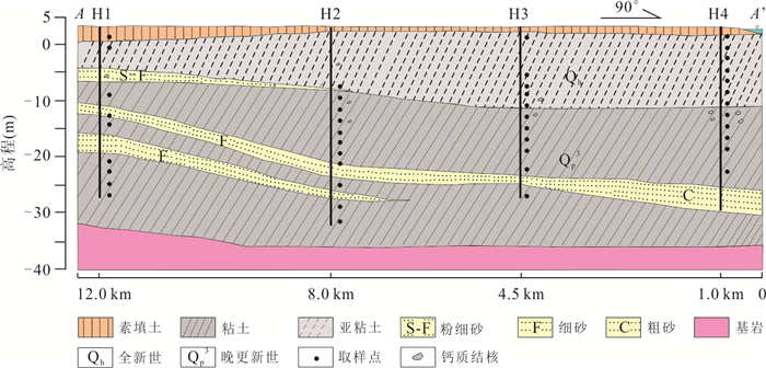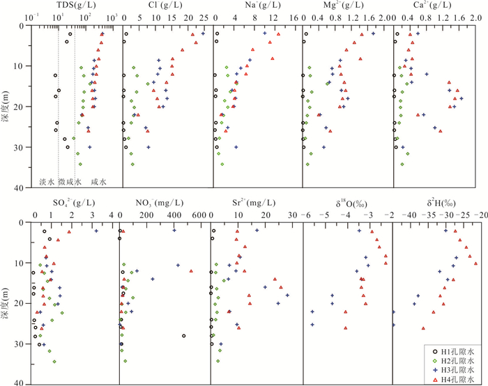 To ascertain the salinity origin and evolution of aquitard porewater in the coastal zone, this paper collected four borehole core samples in the Laizhou Bay, Lianyungang City, and porewater was then extracted by mechanical squeezing. The chemical and isotopic components of porewater were measured and a solute transport model of porewater since Holocene in a 2D typical section was established. The results show that the total dissolved solids of porewater range from 0.9 to 41.4 g/L from land to sea, and it is higher in shallower sediments and lower in deeper ones. Porewater has Cl/Br ratio of 170-533 (267 in average) and 87Sr/86Sr of 0.709 3-0.711 6, together with the positive correlation between Cl‒ and δ18O, indicating that saline porewater is of marine origin and has been affected by silicate weathering and cation exchange. In the Holocene aquitard, porewater is trapped ancient seawater in 10-5 ka BP and the downward infiltration led to salinization of the underlying Pleistocene porewater. About 4 ka BP, porewater was diluted by freshwater in the regression, yet paleo-seawater has not been totally flushed. While in the area close to the coastline, the continuous evaporation led to the occurrence of much saltier porewater. Porewater simulation suggests that aquitard porewater salinity evolution is mainly controlled by transgression-regression events, and during transgression, seawater downward invaded in a "finger-like" pattern, resulting in the heterogeneous distribution of brackish and fresh groundwater.