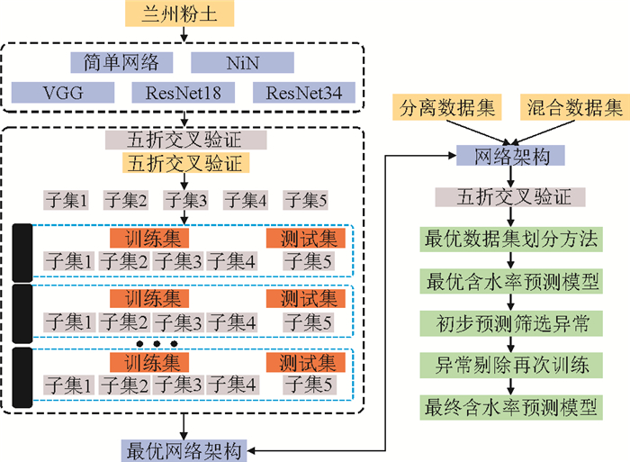 The moisture content of the soil is the main factor affecting the quality of fine-grained soil. Rapid recognition of soil surface moisture content is an urgent need for developing intelligent monitoring and construction technology in agricultural and geotechnical engineering. In order to overcome the limitation that traditional water content measurement or monitoring methods cannot meet the real-time nondestructive monitoring of soil surface moisture content, an intelligent moisture content recognition algorithm based on the image is developed. Firstly, we collected surface photos of 4 different types of soils under different moisture contents in the laboratory and obtained a high-quality sample library of more than 1 400 pictures, which laid a data foundation for machine learning model construction. Then the classical convolutional neural network is used to learn the image dataset of soil moisture content, and the intelligent recognition model of soil moisture content is established. The model comparison results show that the model based on ResNet34 architecture has the best moisture content recognition effect, and the average error of moisture content prediction on the test set is about 2%. This model basically meets the requirement of real-time nondestructive monitoring of soil surface moisture content and can provide an essential means for the development of intelligent monitoring and construction technology in agricultural and geotechnical engineering.