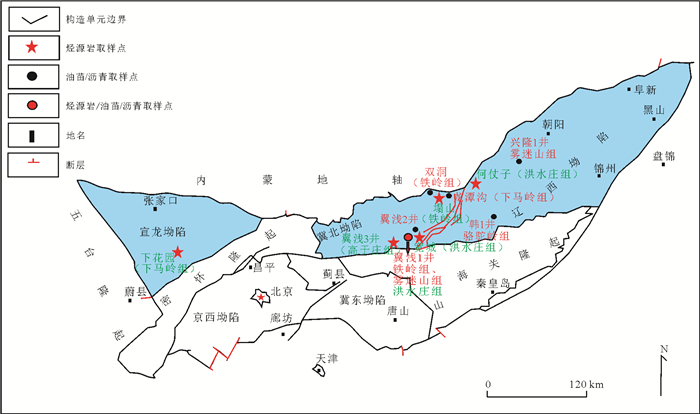 The enrichmentof Meso-Neoproterozoic oil and gas in Yanshan area has been the hot topic focused on by scholars. Total Organic Carbon (TOC) test, pyrolysis, gas chromatography (GC), gas chromatography-mass spectrometry (GC-MS) and other methods are applied in this paper to discuss organic geochemical characteristics of samples. Especially, the biomarker compounds, organic matter sources and sedimentary environment are discussed in detail. The geochemical and biomarker characteristics of oil seepage/asphalt and source rocks are compared to identify the major source rocks of Meso-Neoproterozoic strata in Yanshan Region. The results show that the source rocks of the Xiamaling and Hongshuizhuang formations, featured with high content of organic carbons, great hydrocarbon generation potential and moderate degree of thermal evolution, are good and supreme source rocks.The source rocks of Tieling Formation are poor-medium source rocks, and the degree of thermal evolution of Gaoyuzhuang Formation is excessively high to determine the type of source rocks. According to the characteristics of biomarkers in the researched area, the source rocks are divided into two categories. Wherein, the source rocks of Hongshuizhuang, Tieling and Xiamaling Formations are classified into Category Ⅰ. The relative contents of acyclic isoprene pristane (Pr) and phytane (Ph) are very low, with certain abundance of regular C20 tricyclic terpane (C20TT), C19TT and special 13α (n-alkyl) - tricyclic terpanes, rich in tetracyclic terpane (C24TeT), norneohopane (Ts and C29Ts) and rearranged hopanes (C30Dia), and are characterized by the absence of sterane compound.Revealing moderate degree of thermal evolution, anoxic sedimentary environment and a special hydrocarbon generating organism of Category Ⅰ source rocks. Gaoyuzhuang Formation, provided with Category Ⅱsource rocks, is characterized with high abundance of C23-C25TT and regular hopane, common C27-C29 regular steranes, low abundance of C24 tetracyclic terpane, norneohopane and rearranged hopane, and no drimane and 13α (n-alkyl)-featured with tricyclic terpene serial compound is detected, showing the characteristics of crude oil in typical marine carbonate sedimentary environment and indicating various biological sources. The oil and source rock correlation shows that Category Ⅰ oil seepage/asphalt mainly originates from the source rocks of Hongshuizhuang Formation, while the organic geochemical composition characteristics of CategoryⅡasphalt sandstone are extremely similar to the source rocks of Gaoyuzhuang Formation.