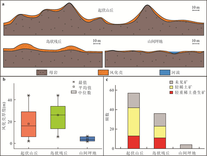 The ion-adsorption type REE deposit is a critical mineral resource in China that has a great impact on international REE supply. Guangxi, as one of the major provinces in southern China that developing the ion-adsorption type REE, has numerous deposits and abundant reserves. However, when examining the mineralization classification, the majority of the REE deposits in Guangxi is categorized as LREE-type, with fewer of the HREE-type. To bolster Guangxi's reserves of HREE, it conducted a wide screening of potential prospecting directions and proposed that a newly reported LREE+HREE overlapping type deposit could serve as a breakthrough target. Furthermore, it selected a demonstration district located in Jiaping, Lingshan County, to conduct integrated work encompassing both scientific research and mineral exploration. The results reveal that, in addition to the common LREE-type mineralization, the LREE+HREE overlapping-type mineralization is also found in the demonstration district, characterized by a dual-layer mineralization structure with "upper LREE ore and lower HREE ore". Both two mineralization types share similar parent rock conditions, which are associated with medium to coarse-grained biotite monzonitic-granodioritic granite with high total REE content (ΣREE > 260×10-6), low to moderate LREE distribution (1 < LREE/HREE < 4), and rich in easily weathered REE-bearing accessory minerals. However, compared to the LREE-type, the LREE+HREE overlapping-type tends to be developed in some special geomorphological-hydrological locations, where thick regolith and strong soil water infiltration exist. This preferred exogenous environment could provide more favorable spatial and dynamic conditions for the happening of long-distance migration of REE, enhancing the differentiation effect between LREE and HREE due to their different behaviors. More mobile HREE, compared to LREE, tend to migrate to the lower part of the regolith profile, ultimately giving rise to the "upper LREE ore and lower HREE ore" dual-layer mineralization structure. Guided by the ore-forming theory mentioned above, it adjusted the conventional prospecting methods through diluting exploration spacing overall and increasing drilling validation locally, which enable to have yielded substantial practical progress. The discovery of HREE resources has reached a medium-sized scale, making it a good reference case for guiding HREE exploration not only in Guangxi but throughout South China.