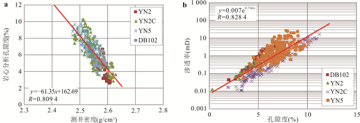 In order to unravel the tight gas reservoir characteristics and establish the well log evaluation methods of Jurassic tight gas reservoirs in Kuqa depression, core observation, rock physics experiment, conventional logging and image log data were used to unravel the "seven relations" of lithology, physical property, electrical property, oil-gas bearing property, brittleness, source rock properties and in-situ stress of Jurassic Ahe Formation tight sandstone gas reservoir in monocline zone of northern Kuqa depression. The logging interpretation model of porosity, permeability and gas saturation was established, and well logging calculation model of TOC (total organic carbon), brittleness index as well as triaxial in-situ stress profile were established respectively. Then the logging methods of source rock property, reservoir quality and engineering quality are established based on the research of "seven relations". The results show that the lithology of Ahe Formation mainly includes conglomerate, medium-coarse sandstone and mudstone. The reservoir spaces are mainly intergranular dissolution pore, intragranular dissolution pore, micro-fractures and micro-pores. The typical gas-bearing interval is characterized by low gamma ray (< 60 API), high resistance (> 10 Ω·m) and high acoustic time difference (> 70 μs/ft). The source rock quality was characterized by TOC content calculated by logging, and four reservoir quality types were classified according to physical property test, mercury injection test and the degree of fracture development. The engineering quality was identified and classified mainly by brittleness index and in-situ stress. Finally, the logging evaluation results of "three qualities" were applied to the evaluation and prediction of single well productivity, which is in good agreement with the actual well test, and the results were testified in the eight intervals of seven wells including DB 101 and other wells.