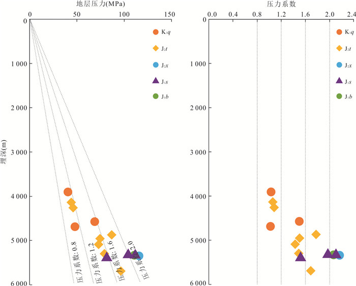 Formation pressure recovery is of great significance for the analysis of hydrocarbon accumulation process. This study restores the pressure of Jurassic Sangonghe Formation during hydrocarbon accumulation period in Fukang Sag with inclusion observation technology, the inclusion salinity homogenization temperature method and PVTx simulation method. The results show that the overpressure of Jurassic begins from 4 500 m, and the overpressure amplitude increases with the increase in buried depth, in Fukang Sag. At the same depth, the overpressure of the main reservoir of Sangonghe Formation is obvious. There are two stages of hydrocarbon inclusions captured in the Sangonghe Formation. The fluorescence colors of hydrocarbon inclusions captured in the first stage which occur inside the quartz particles are mainly yellow and yellowish green, and the main temperature range of associated aqueous inclusions is 85-95 ℃, corresponding to the hydrocarbon accumulation in the middle of Early Cretaceous. Since Neogene, the fluorescence color of hydrocarbon inclusions captured in the second stage, which occur along the healing seams that cut through secondary enlargement of quartz or the whole the after the secondary, is mainly bluish white, and the number of the gas-liquid two-phase hydrocarbon inclusions significantly increases. The homogenization temperature of associated aqueous inclusions is 105-115 ℃, corresponding to hydrocarbon accumulation since the Neogene. During hydrocarbon migration and accumulation, overpressure developed in the Sangonghe Formation. The pressure coefficient in the first stage is 1.39-1.44 and that in the second stage is as high as 2.11. The pressure presents the evolution mode of "pressurization-decompression-strong pressurization". Strong overpressure represents strong hydrocarbon transportation and movement force. It is the key factor for hydrocarbon accumulation in Jurassic tight reservoirs.