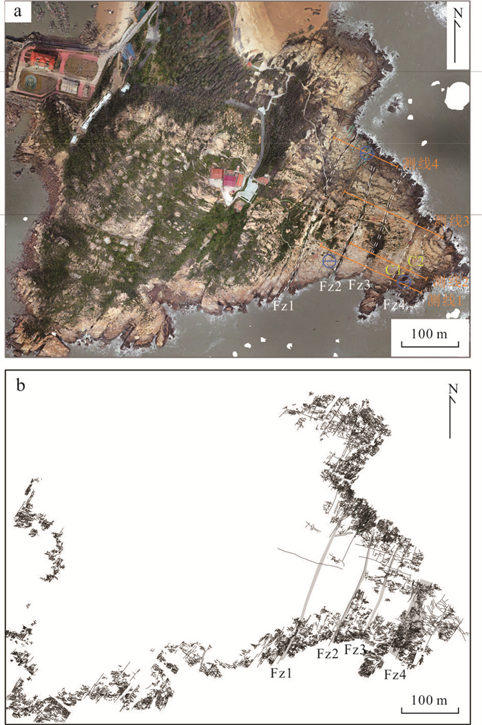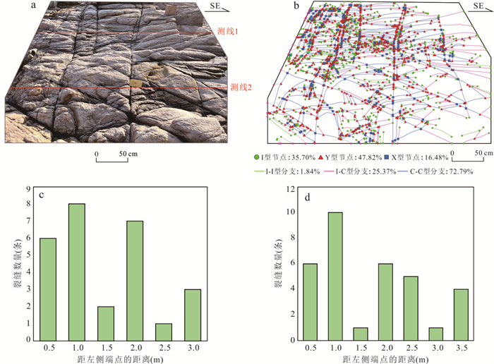 Characteristics of fracture distribution are vital for research of granitic reservoirs. Here, unmanned aerial vehicle (UAV)-based photogrammetric data were used to identify and quantitatively analyze the structural fractures developed in the outcrops of Cretaceous granites from coastal region of South China. Fracture density and connectivity were described in detail to gain a better insight into the nature of fracture distribution developed in multi-phase tectonic events. The results show that the study areas predominantly exhibit two sets of fractures of NE20°‒40° and SE100°‒140°. The NE-trending fractures developed earlier than SE-trending fractures. Multiphase tectonic deformation significantly enhances the connectivity and density of fracture network. Areas of elevated density are concentrated within the extensive intrusion zone of diabase dikes and the interior of fault zones. The linear density, surface density, and connectivity of the structural fracture network are positively correlated with the size of the fault zone. This study allows us to build a structural model to elucidate the development of multi-phase structural fractures in coastal region of South China. It underscores that fracture intersections such as fault zones and intrusions by diabase dikes are areas of high fault network connectivity and density, and thus optimal reservoir conditions. This research provides a guideline for understanding fracture network distribution in granitic reservoirs and for reservoir evaluation in crystalline basement during petroleum exploration.