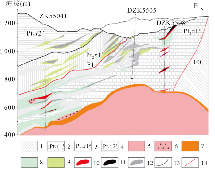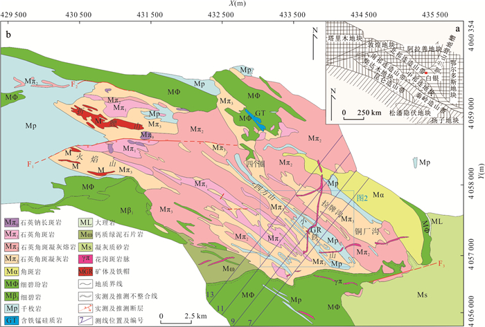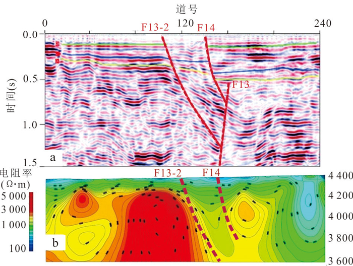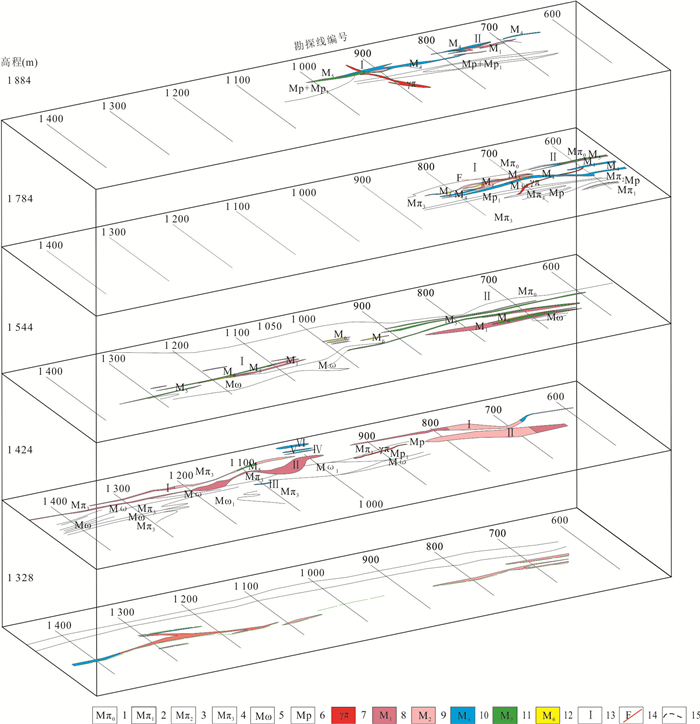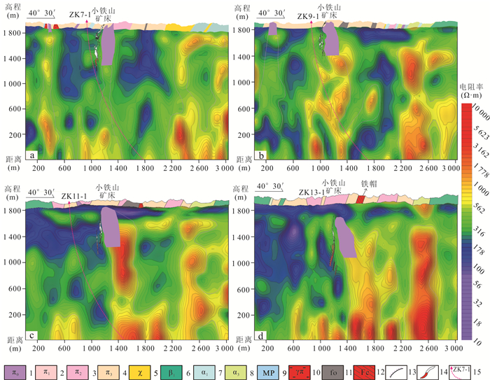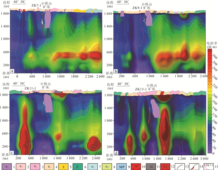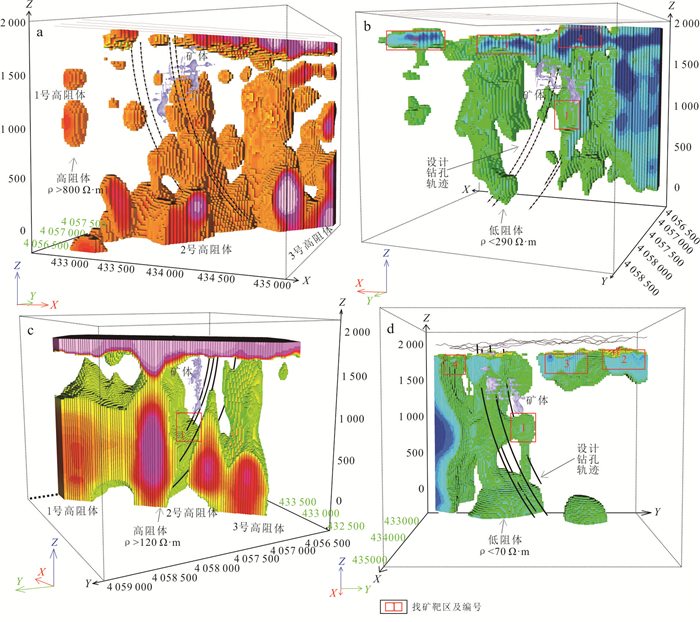 Prospecting for ore bodies in the deep and peripheral zones remains pivotal for breakthroughs in the volcanic-hosted massive sulfide (VHMS)-type Cu-polymetallic ore field of the Baiyinchang district. However, conventional geophysical methods have limitations in application due to shallow electromagnetic interference and insufficient resolution at depth. To address these challenges, this study innovatively integrates the Wide-Field Electromagnetic Method (WFEM) and Coded Source Electromagnetic Sounding (CSES) for deep exploration in the Xiaotieshan mining area. The results demonstrate that the resistivity of ferromanganese siliceous rocks and lead-zinc ores is below 100 Ω·m, while the ore-hosting Quartz-keratophyre tuffs exhibit a low resistivity (mean value: 191 Ω·m). In contrast, the subquartz-keratophyre, as the main ore-controlling geological unit, shows significantly higher resistivity (mean value: 1 976 Ω·m), revealing quantifiable electrical contrasts. Subvolcanic intrusions are characterized by dendritic high-resistivity anomalies (> 1 500 Ω·m), with favorable prospecting targets identified in transitional zones (< 400 Ω·m), deep extensions of known ore bodies, and low-resistivity anomalies atop high-resistivity zones. The combined application of two geophysical methods in complex stratigraphic regions of volcanic rocks demonstrates synergistic effects: the wide-field electromagnetic method effectively reveals the electrical structure of volcanic basement and deep-seated high-resistivity rock masses, while the encoded-source electromagnetic sounding method enables high-precision delineation of middle-shallow low-resistivity mineralized zones. Based on integrating geophysical anomalies and metallogenic dynamics, a composite genetic model-termed "volcanic structure-hydrothermal convection-tectonic activation"-is proposed to elucidate the multi-stage mineralization processes. A geological-geophysical "magma-tectonic-alteration synergistic prospecting model" is established, delineating four prospective targets. These findings provide critical constraints for drill hole verification and offer scientific guidance for deep-peripheral exploration in the Baiyinchang ore field and regional analog studies.