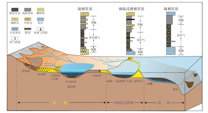 Marine-continental transitional (MCT) shale gas is an important successor of unconventional natural gas resources in China. Based on integrated analyses of literature review, outcrop investigation, exploration practice, drilling cores, and experimental testing, it systematically reviewed and compared the development history of shale gas globally and in China, examined the exploration progress and challenges of MCT shale gas in the Ordos basin, Sichuan basin, and adjacent areas, and conducted a comprehensive discussion of the key geological conditions for the formation of shale gas and its resource potential, challenges, and counter measures. The results show that MCT shale in China is mainly developed within the Carboniferous-Permian strata (Benxi, Shanxi, and Longtan formations), dominated by lagoon, swamp, and tidal flat facies, and possesses favorable conditions for shale gas formation and development potential. (1) The organic-rich shale intervals are thick and widespread, with dominant Type Ⅲ organic matter, high organic matter abundance (average TOC content≥3.0%), and moderate thermal maturity (Ro=1.60%-2.61%), which are conducive to large-scale gaseous hydrocarbon generation. (2) Shale reservoirs are dominated by inorganic pores (clay mineral pores), with well-developed organic micropores (0.4-0.7 nm), and a high proportion of adsorbed gas (average 61.0%, up to 75%), providing favorable conditions for shale gas storage and enrichment. (3) The total MCT shale gas resource in China exceeds 50×1012 m3, of which the favorable resource volume in the Jinci Member of the Benxi Formation, the Shan23 and Shan 22+1 sub-members of the Shanxi Formation in the Ordos basin reaches 16×1012 m3. Notably, a commercial breakthrough has been achieved in the Shan23 sub-member, demonstrating promising exploration and development prospects. However, the exploration and development of MCT shale gas remain at the early breakthrough stage, facing many challenges such as strong heterogeneity of sweet spots and high clay mineral content, which constrain drilling, completion, fracturing, and development effectiveness. To achieve large-scale development of MCT shale gas requires integrated evaluation of "sedimentary facies-preservation conditions–resource potential, " as well as technological advances in "multi-cluster within stage+limited-entry fracturing" and "platform-based well pattern+3D well deployment." This will promote the coordinated co-production of shale gas, coal-rock gas, and tight gas within the MCT shale system in the context of the whole petroleum system. By overcoming bottlenecks in geological theory and engineering technology, MCT shale gas is expected to become a new strategic successor for increasing natural gas reserves and production in China.