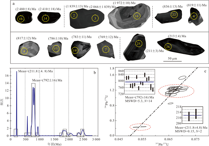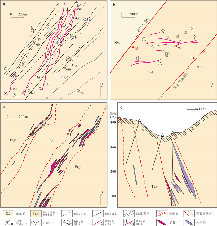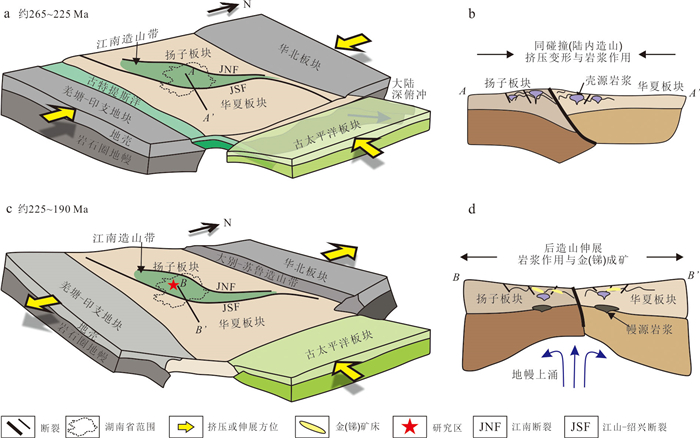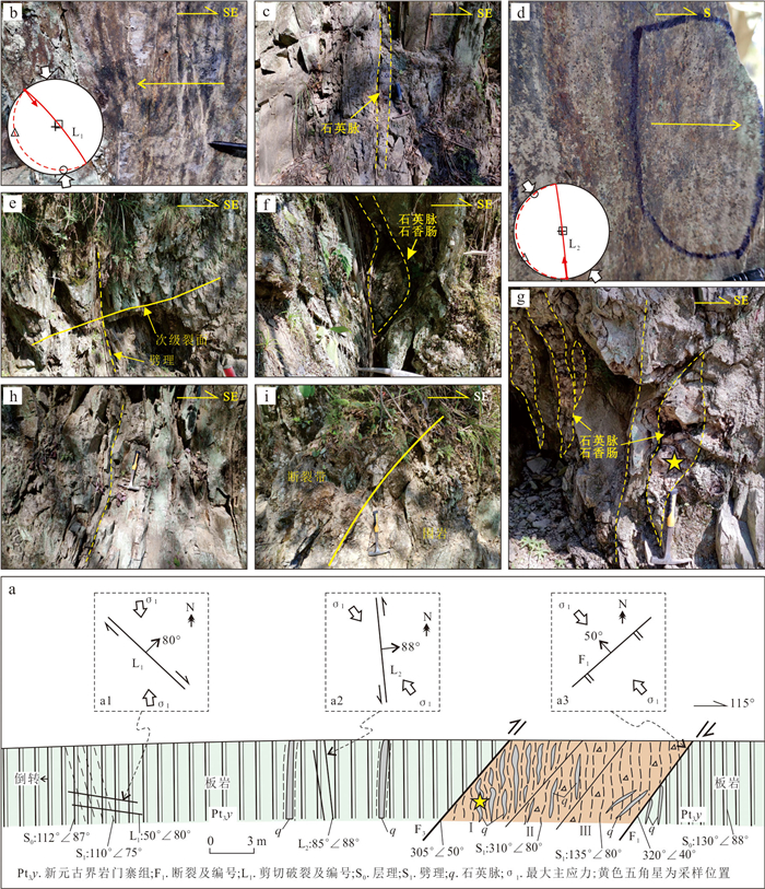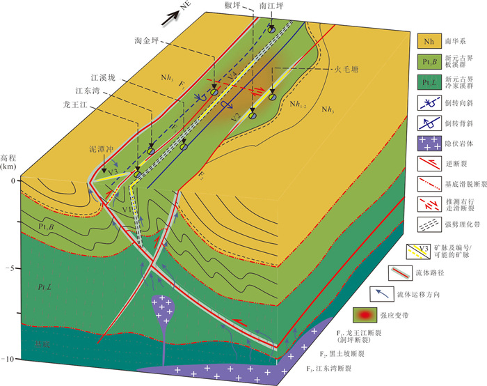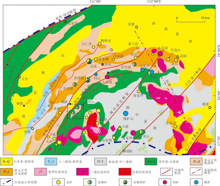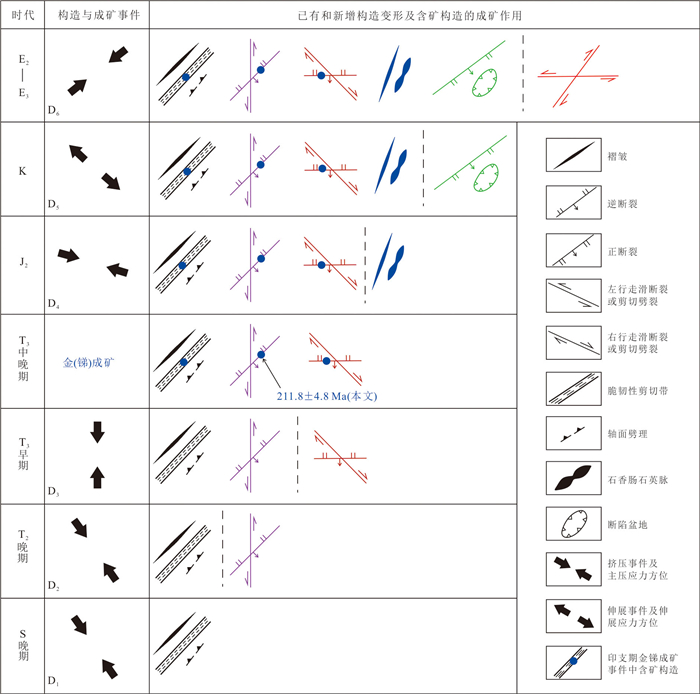 To clarify the deformation sequence and ore-controlling structures of the Longwangjiang Au-Sb ore-field in West Hunan, as well as to reveal the age and tectonic setting of its formation, it conducted detailed structural analyses and LA-ICP-MS U-Pb dating of ore-bearing quartz vein hydrothermal zircon. Additionally, it comprehensively analyzed regional tectonic evolution and age data. The study area underwent six stages of structural deformation events, progressing from early to late: Late Silurian NW-NWW compression, late Middle Triassic NW-NWW compression, late Late Triassic near SN compression, late Middle Jurassic NWW compression, Cretaceous regional NW-SE extension, and Mid-Late Cenozoic NEE-NE compression. The LA-ICP-MS U-Pb age of the quartz vein hydrothermal zircon was determined to be (211.8±4.8) Ma. The comprehensive analysis suggests that: mineralization primarily occurred during the Late Triassic (211-206 Ma) and the formation of the Longwangjiang ore-field is associated with late-stage hydrothermal activity triggered by the collision of the Indochina period with the South China margin during the intracontinental collision phase. The ore-field is situated within a block confined by the reverse thrust of the Longwangjiang fault (F1) and the Heitupo fault (F2). The F1 and F3 faults serve as ore-guiding structures, while the NE-NNE-trending strong foliated zones (shear zones) and the Jiangdongwan fault serve as ore-distributing and ore-bearing structures simultaneously. The ore-distributing and ore-bearing structures in the deep parts of the ore deposit have great mineral exploration potential; the Taojinping-Huomaotang area is a key region for exploration due to concentrated structural stress.