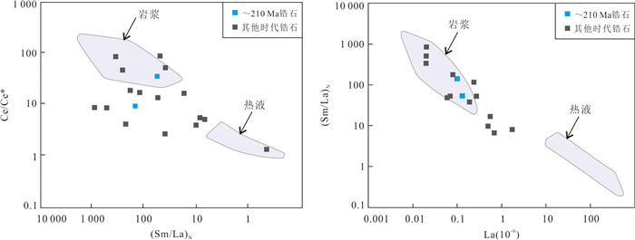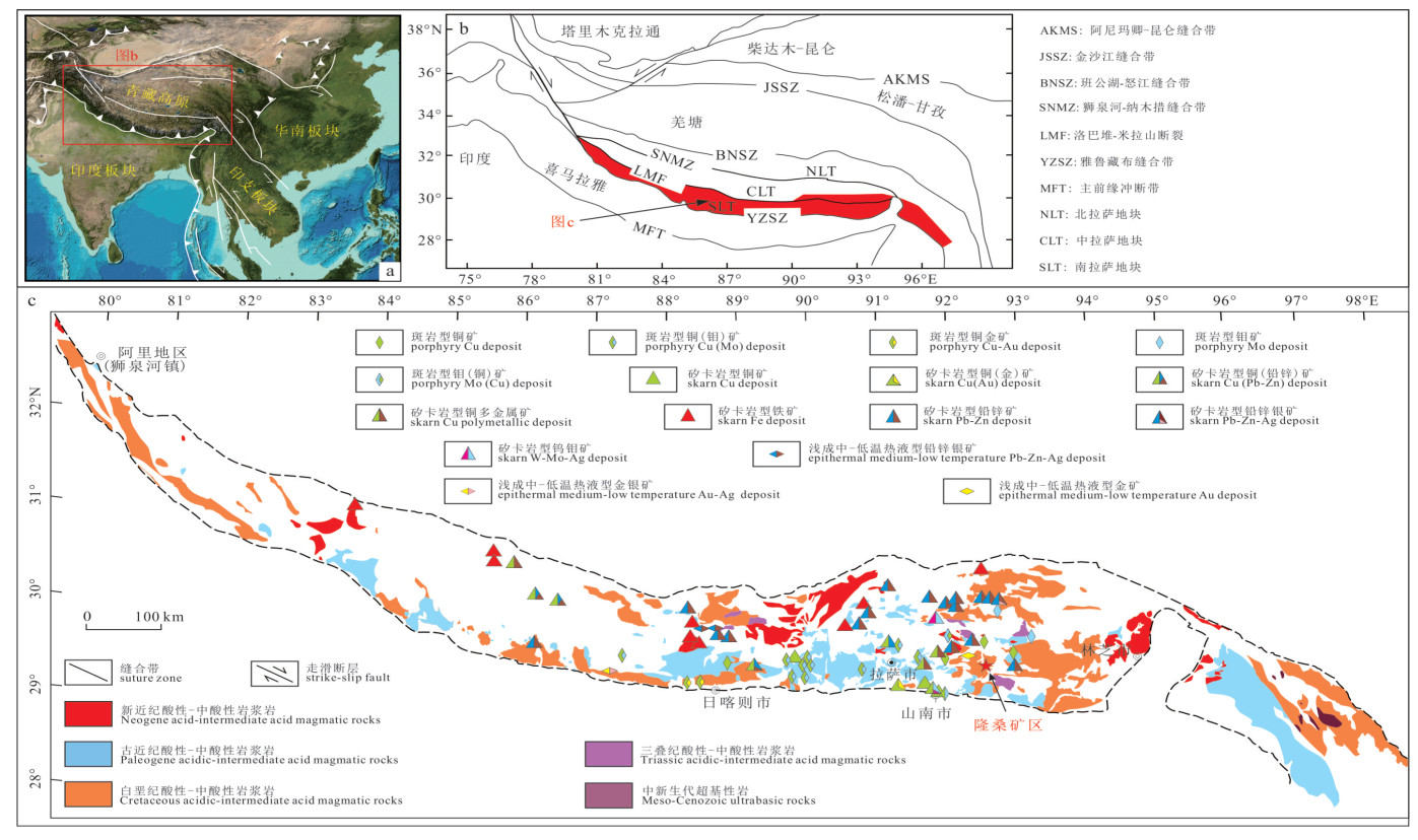 The Longsang deposit is a porphyry copper-molybdenum mining area where mineral exploration is currently underway in the eastern section of the Gangdese metallogenic belt. To further constrain the magmatic-mineralization age and evaluate the metallogenic potential of the ore-bearing intrusions, detailed field geological surveys, and drill core logging were conducted, and zircon U-Pb dating and trace element analysis were performed on the mineralized rock bodies of biotite granodiorite and biotite monzogranite porphyry, with Re-Os dating of molybdenite veins in this study. The results indicate that the ore-bearing intrusions in the Longsang deposit are of crystallization ages of (21.80±0.29) Ma and (21.68±0.23) Ma, while the molybdenite mineralization age is (19.1±0.6) Ma. Additionally, zircon trace elements exhibit high Ce/Nd, (Ce/Nd)/Y, and low Dy/Yb ratios, along with negative Eu anomalies and positive Ce anomalies, indicating that the magma had high oxygen fugacity and water content, which facilitated the enrichment and transport of ore-forming elements such as Cu and Mo. In conclusion, the Longsang deposit underwent diagenetic mineralization during the Miocene epoch, demonstrating significant mineralization potential. These findings provide valuable insights into the spatiotemporal distribution patterns of deposits in the eastern Gangdese belt, contributing to a deeper understanding of regional metallogeny.