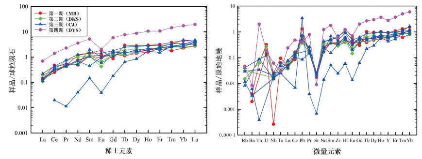 The Xiazhuang uranium ore field in North Guangdong is characterized by five sets of approximately equidistant NWW-trending diabase dikes, which are closely related to uranium mineralization. To determine the genesis of diabase and its relationship with uranium mineralization. This study systematically investigates the diagenetic age, genesis of diabase, and its controlling mechanisms on uranium mineralization through geochemical analysis of diabase, apatite U-Pb geochronology, and H-O isotopic analysis of ore-forming quartz, combined with regional tectonic background. Results indicate that: (1) The diabase was formed during two magmatic events (200-180 Ma and 150-140 Ma), corresponding to the Early Jurassic and Late Jurassic, respectively. (2) The diabase is enriched in large-ion lithophile elements (LILEs) and highly incompatible elements. The chondrite-normalized rare earth element (REE) patterns exhibit right-leaning trends and no significant Eu or Ce anomalies, indicating an intraplate basalt affinity derived from partial mantle melting with metasomatism by subduction-related fluids. (3) The early-stage diabase (200-180 Ma) served as favorable host rocks for uranium mineralization. The deep-seated faults associated with diabase emplacement provided pathways for ore-forming fluids, and the intersections between faults and diabase facilitated the formation of vein-type uranium deposits with crust-mantle hybrid fluids. The late-stage diabase (150-140 Ma) not only inherited the role of the early-stage diabase but also contributed mantle-derived fluids and mineralizing agents (ΣCO₂) during the 138-122 Ma uranium mineralization stage, promoting the formation of fractured alteration-type uranium deposits dominated by mantle-derived fluids.
