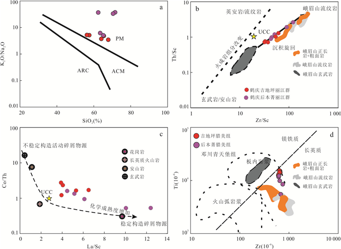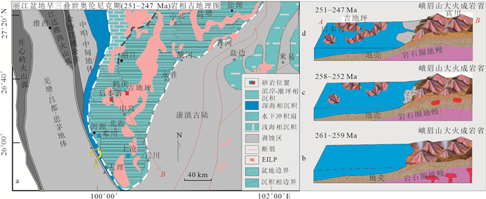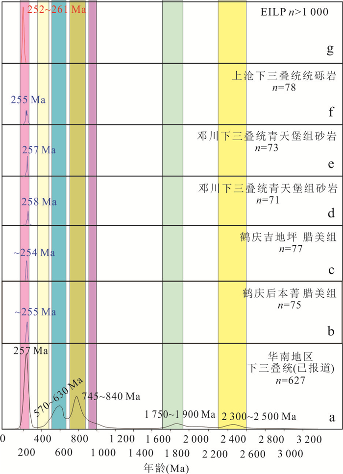 Lijiang basin is a multi-plate confluence zone located in the southwestern margin of the Yangtze block. The study for the provenance of the Lower Triassic reveals the source-sink system of the southwestern Yangtze block and its spatio-temporal relationship with the western Gondwana arc basin system. Field observations and microscopic identification show that the sandstones of the Lamei Formation in Heqing region are mainly derived from the proximal transport of felsic volcanic rocks. The detrital zircons exhibit single age peaks of ~254 Ma and ~255 Ma, corresponding to the timing of felsic magmatic activity in the Emeishan Large Igneous Province (ELIP), and are consistent with interior/non-orogenic magmatic zircon trace element signatures, distinguishing them from those in arc orogenic belts. The εHf(t) values of the Lu-Hf isotopic analysis indicate the provenance of the sandstones of Lamei Formation are from the felsic rocks of the ELIP. Whole-rock geochemical data show that the Lamei Formation shares similar trace element characteristics with the Emeishan rhyolites, porphyries and syenites. A comprehensive analysis suggests that the materials of the Lamei Formation originate from the proximal transport of rhyolite, trachyte and syenite from ELIP. During the Early Triassic, the Lijiang basin functioned as a passive continental margin sedimentation area, primarily receiving materials from the ELIP, with no contributions from the western arc-basin system.