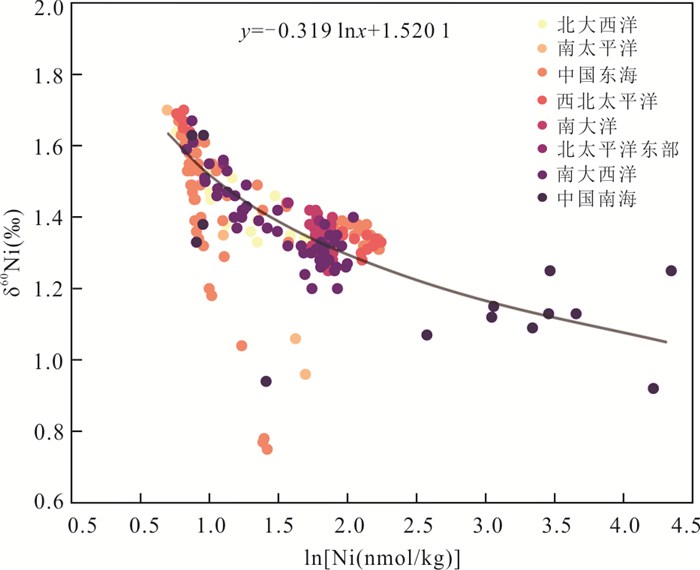 The nickel isotope system serves as a crucial tool for investigating the sources, migration, transformation, and cycling processes of nickel in the ocean. Marine sediments play a vital role in the geochemical cycling of nickel, functioning both as a "source" and a "sink" for the element. The nickel isotopic composition can record key information about the nickel cycling process in seawater. In this paper it systematically summarizes the nickel isotopic compositions of seawater and major marine reservoirs, including riverine inputs, hydrothermal systems, and diverse marine sediments (iron-manganese oxide deposits, anoxic sediments, and carbonate sediments). It analyzes nickel isotopic compositions and their interrelationships, and delves into the fractionation mechanisms of nickel isotopes between sediments and seawater and their implications for reconstructing palaeoceanographic environments. The findings demonstrate that nickel isotope possesses unique advantages in tracing changes in palaeoceanographic productivity, sulfur-rich environmental evolution, and the mass balance of the global nickel cycle.