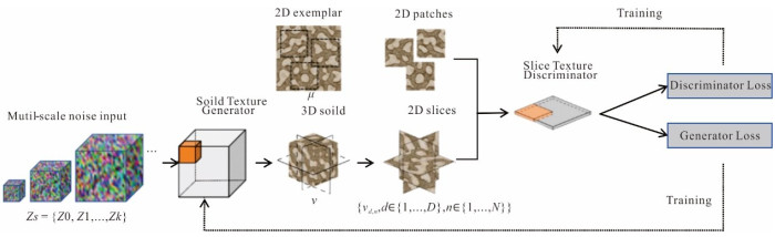 Solid texture synthesis based on 2D samples (deep learning) is an important pathway for rock solid texture generation, which currently suffers from the inability of long distance dependence and color distortion. In this paper, it proposes an innovative method based on 3D coordinate attention generative adversarial network (3D-CA-GAN). By extending the coordinate attention mechanism to three-dimensional space (3D-CA) and combining the content-aware upsampling module and multi-scale discriminator, high-fidelity modeling of the spatial distribution of mineral particles is achieved. Experiments show that the method significantly outperforms existing techniques in terms of SSIM (0.773), PSNR (24.92% enhancement), and LPIPS (0.110 reduction), and ablation experiments further validate that the 3D-CA module improves the SSIM of directional textures by 14.69%. This study provides a new solution to texture synthesis with realism for geological modeling, and its 3D attention framework is useful for generic generation tasks.