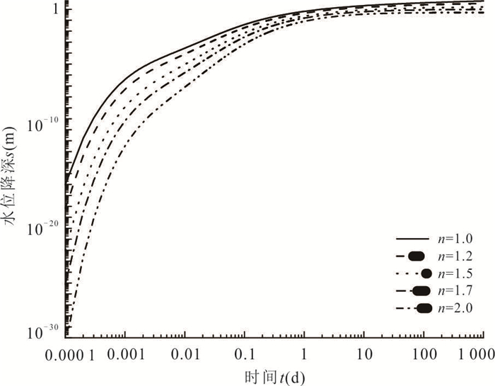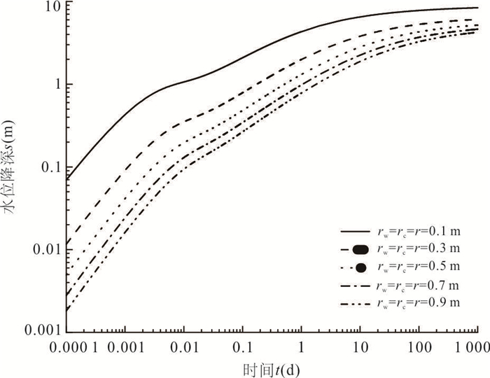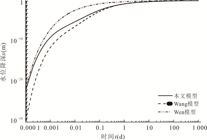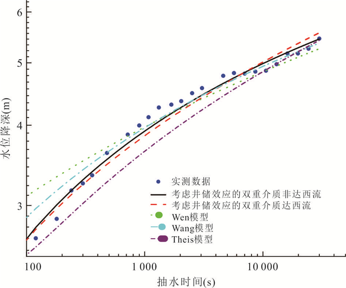 To find out a suitable equation for single-well pumping test in double-porosity aquifer, it takes wellbore storage effect into consideration and present the double-porosity non-Darian model with wellbore storage effect based on double-porosity non-Darcian model in this study. Taking a single-well pumping test as an example, the results show that the simulation curve has the highest accuracy when using the double-porosity non-Darcian model proposed in this study; taking non-Dacian effect into consideration is more suitable when the pumping rate is relatively large and the flow in aquifer shows non-Darcian property. When considering non-Darcian effect, we can have a better inversion of the instantaneous drawdown in early time; when regarding the aquifer as double-porosity, we can portray the weak to strong process of the water exchange in fracture and porosity media. In that case, the double-porosity non-Darcian model with wellbore storage effect presented in this study is suitable for single-well pumping test in double-porosity aquifer.