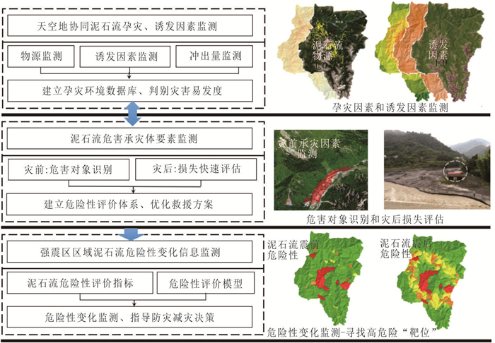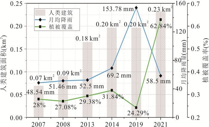 Few studies focus on the change of debris flow hazard, although the change of disaster-pregnant factors would affect the hazard of debris flow. Taking the Chutou gully as an example, this study aims to discover the impact of disaster-pregnant factors on the development of debris flow hazard from 2007 to 2021 based on entropy method and multi-source monitoring data. A monitoring system of debris flow hazard is proposed. The findings are as follows: materials of debris flow increased 27 times after the Wenchuan earthquake, and then the materials continued to decrease and would return to the pre-earthquake levels by 2027. The critical rainfall of debris flow in 2019 increased by 12.97% compared with 2013 and the debris flow might occur if the conditions met the formula f(Ih, P)≥R(34.40 mm). The value of debris flow hazard increased after the earthquake, and hazard value would reach the peak (very high hazard) under extreme rainfall then relatively decrease. The Chutou gully would keep the high level of debris flow hazard after 2021.The monitoring system of debris flow hazard is proposed to find the high hazard area of debris flow, which could provide some new clues for prevention and control of debris flow.