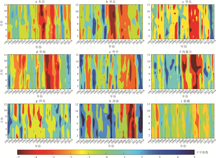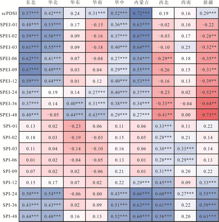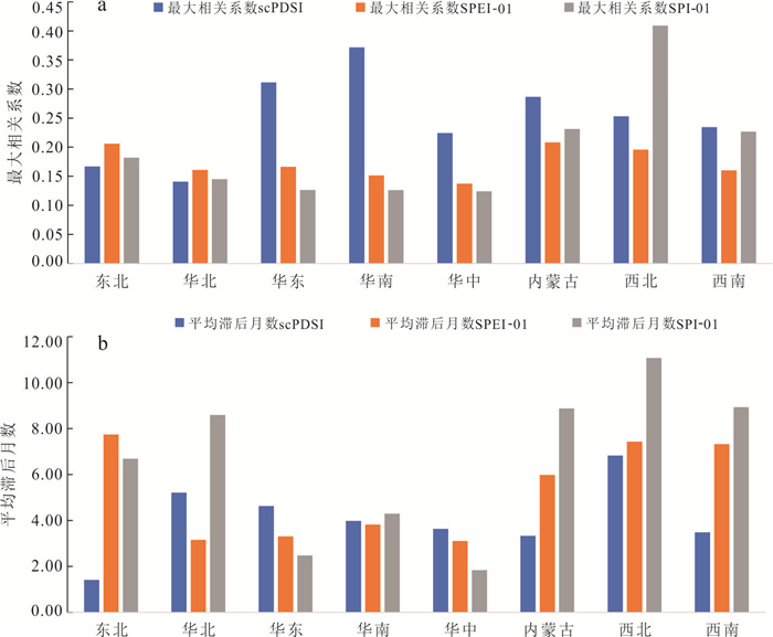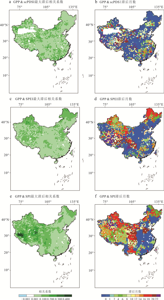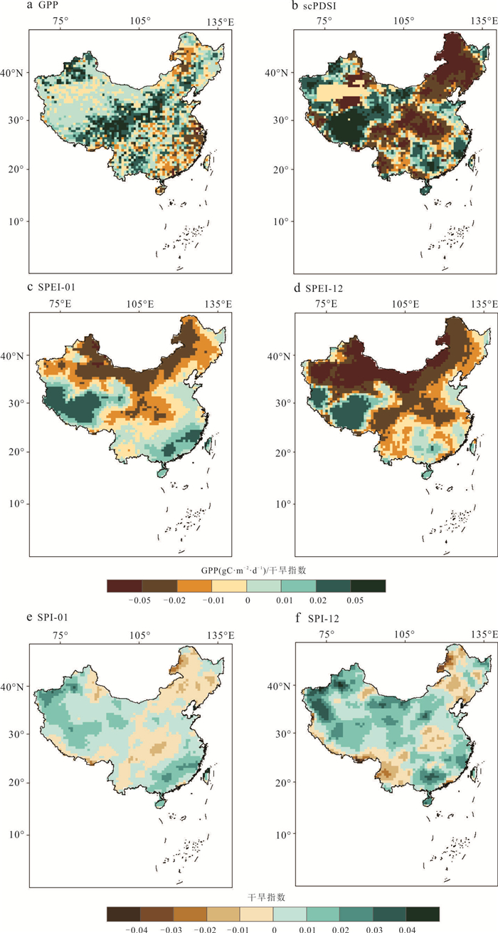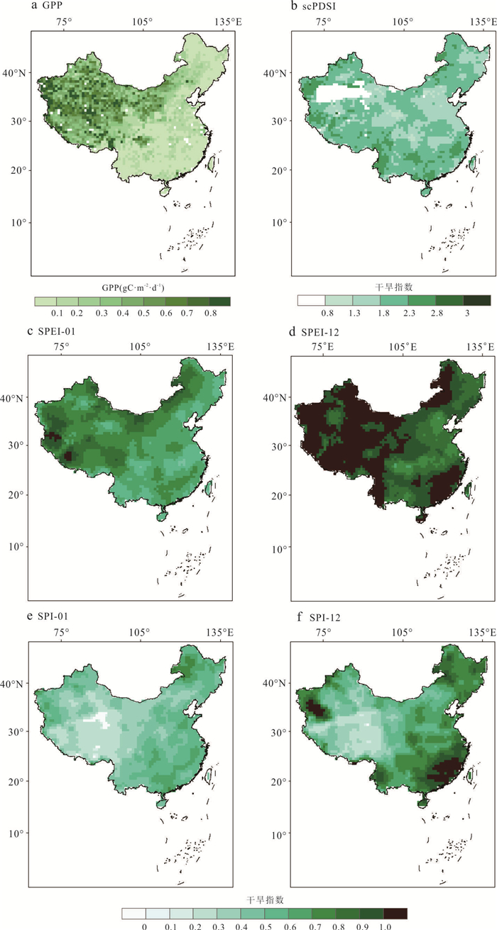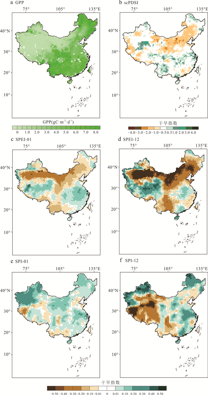 To describe the evolution characteristics of different types of drought and accurately estimate their impact on ecosystems, based on methods such as Mann-Kendall and Pearson correlation coefficients, using the gross primary productivity (GPP) dataset from 1982 to 2018 and concurrent drought indices at different time scales (including scPDSI, SPEI, and SPI), a quantitative assessment was conducted on the response mechanism of the GPP of vegetation in China to different spatiotemporal scales of drought types. The results show that the most significant trend of drought intensification in China is in Inner Mongolia, with the regional averaged scPDSI, SPEI, and SPI declining at an annual rate of 0.039, 0.026, and 0.004, respectively. Further analysis indicates that there are significant differences in the correlation and lag effects between GPP and monthly drought indices in various regions of China. The response to the agricultural drought index is most pronounced in the East China and South China regions, with an average lag time of 4 to 6 months. In contrast, the Inner Mongolia, Northwest, and Southwest regions have a more intense response to meteorological drought, with an average lag time of 9 to 11 months, while the Central and East China regions have a shorter response cycle to meteorological drought, only 0 to 3 months.