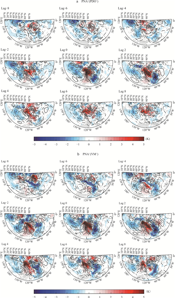 To understand the causes of extreme temperature dipoles in North America during winter, we analyse atmospheric circulation, the westerly jet stream, and the sea surface temperature (SST) background based on reanalysis data. Our study reveals the role of the positive Pacific-North American pattern (PNA+) in driving sub-seasonal temperature dipoles on North America. The results indicate that a weakened North Pacific jet favors the formation of the temperature dipole. Additionally, North Pacific SSTs can modulate the structure and strength of the temperature dipole by influencing the jet stream. Specifically, during the positive phase of the Pacific decadal oscillation (PDO) in winter, a meridionally oriented wave train structure related to PNA+ events is more easily formed, with the North Pacific westerly jet stream shifting southward. This structure contributes to a "warm northwest-cold southeast" temperature anomaly pattern on North America. Conversely, during the positive phase of the Victoria SST pattern, the mid-latitude jet stream is weakened. As a result, the high-pressure system associated with PNA+ shifts westward, while the eastern low-pressure system persists. This forms a horizontal wave train structure, which strengthens the intensity of the "west warm-east cold" surface air temperature dipole anomaly on North America associated with PNA+.