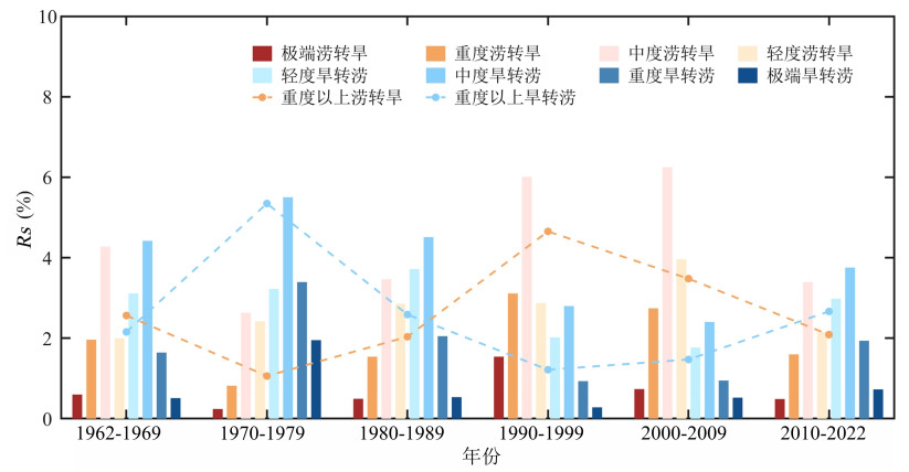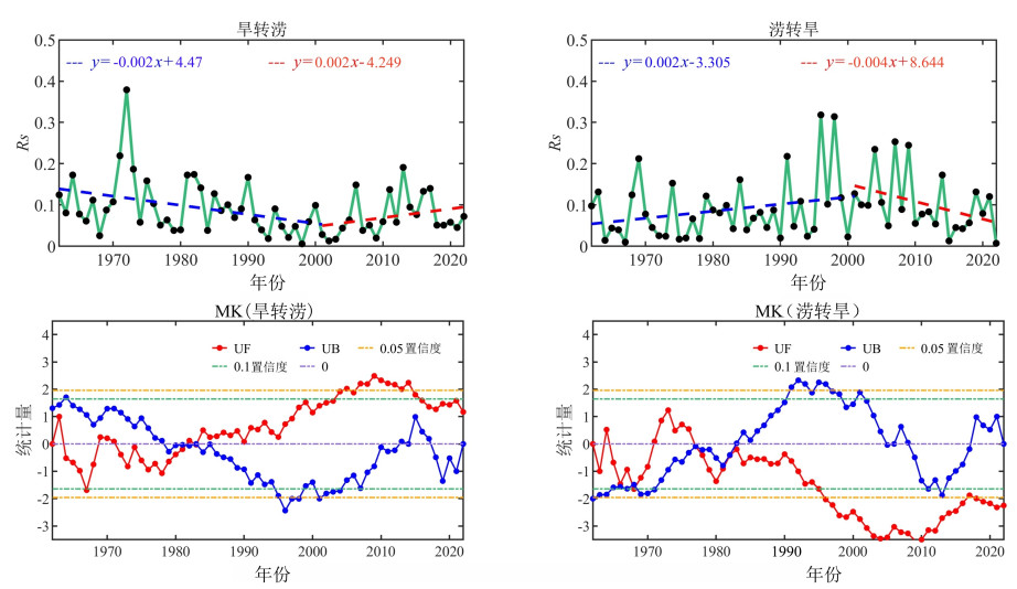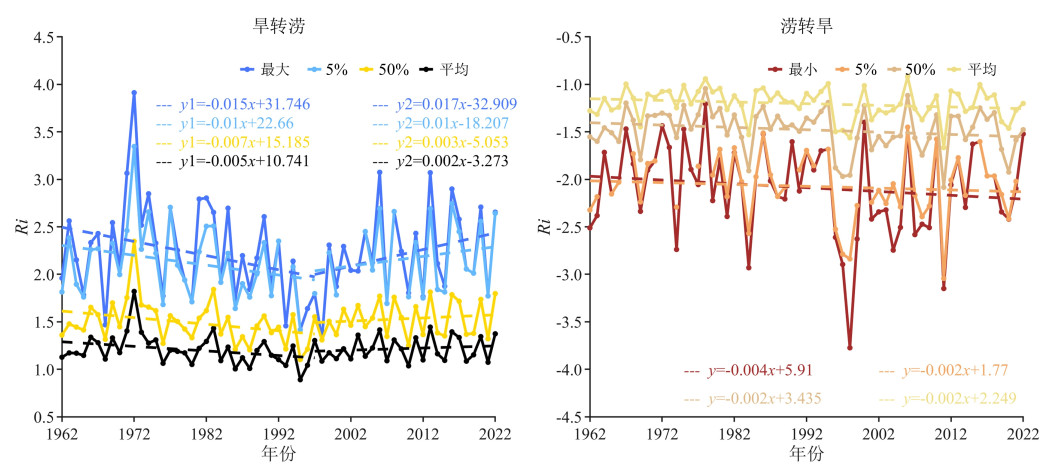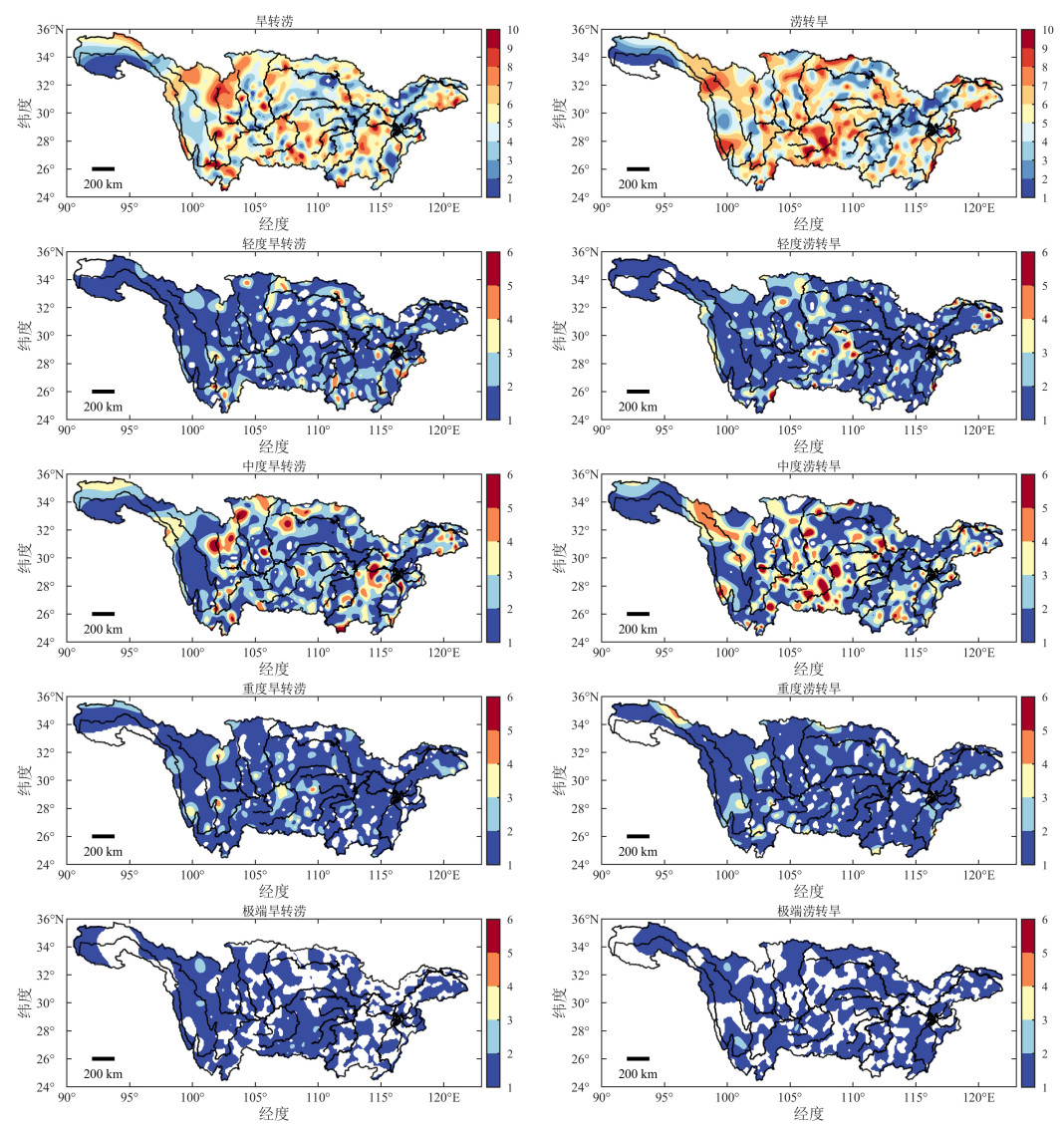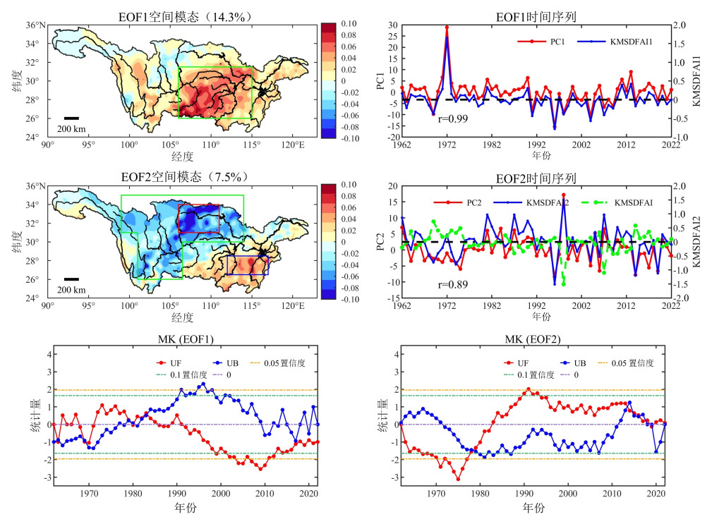 Autumn drought and flood alternation (DFA) has very serious impacts on water storage in reservoirs, power generation, and water supply in the Yangtze River basin (YRB). This paper analyzed the spatial and temporal characteristics of autumn DFA in the YRB by using the multi-scale standardized DFAI index (MSDFAI), which comprehensively considers the effects of alternation intensity and speed, and the associated weather situation alternation was analyzed from the perspective of the atmospheric driving. The results show that the high incidence areas of autumn drought to flood alternation events (DTF) from 1962 to 2022 in the YRB are mostly located in the middle and lower Jinsha River, upper Yalong River, Jialing, Min and Wu Rivers, Hanjiang River above the Shiquan station, and the Poyang Lake water network, in which the frequency of moderate events is the highest. The range of DTF in the YRB shows a decreasing trend before the mid-90s, and then turn to an increasing trend. Similarly, the intensity of extreme DTF in local areas weaken before mid-90s, and then increase, while the flood to drought alternation events (FTD) are on the contrary. The mode decomposition shows that the second pattern is mainly characterized by consistent DTF anomalies in the north of the main stream of the upper reaches of the Yangtze River and the upper reaches of the Han River (key area). Before the alternation, most of southern China is controlled by negative geopotential height anomalies, and the wind field and water vapor transport in the key area are divergent anomalies, and the vertical direction is controlled by the dry subsiding flow, which is unfavorable to the occurrence of rainfall. One month after the alternation, there is a positive anomaly in the geopotential height in the middle and lower YRB, the west Pacific subtropical high is intensified and extends westward and the northern low-pressure trough extends southward. Meanwhile, the wind field and water vapor transport in the key area shows a converging anomaly, and the vertical direction is controlled by updrafts and conduced to heavy rainfall. The above weather situation transition leads to a DTF event, while the FTD event is the opposite.