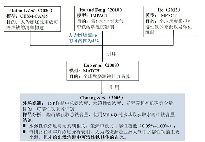Soluble iron in atmospheric aerosols substantially influences marine primary productivity, climate change, secondary atmospheric pollution, and human health. Identifying sources and developing high-accuracy emission inventories of soluble iron are fundamental for refining biogeochemical models to simulate iron deposition fluxes and marine productivity, improving atmospheric chemistry transport models for secondary aerosol simulations and quantifying the sources and contributions of soluble iron affecting human health. This study systematically reviews the source apportionment of iron and soluble iron in atmospheric aerosols, the key factors and underlying mechanisms governing iron solubility, and recent methodological advances in sampling and characterization of combustion-derived iron-containing aerosols. With particular focus on emission inventory development for combustion-related soluble iron, we critically examine current methodologies and identify persistent challenges. It is expected the summarization here provides a basic dataset and theoretical frameworks for accurate assessment of iron's climatic, environmental and health impacts.