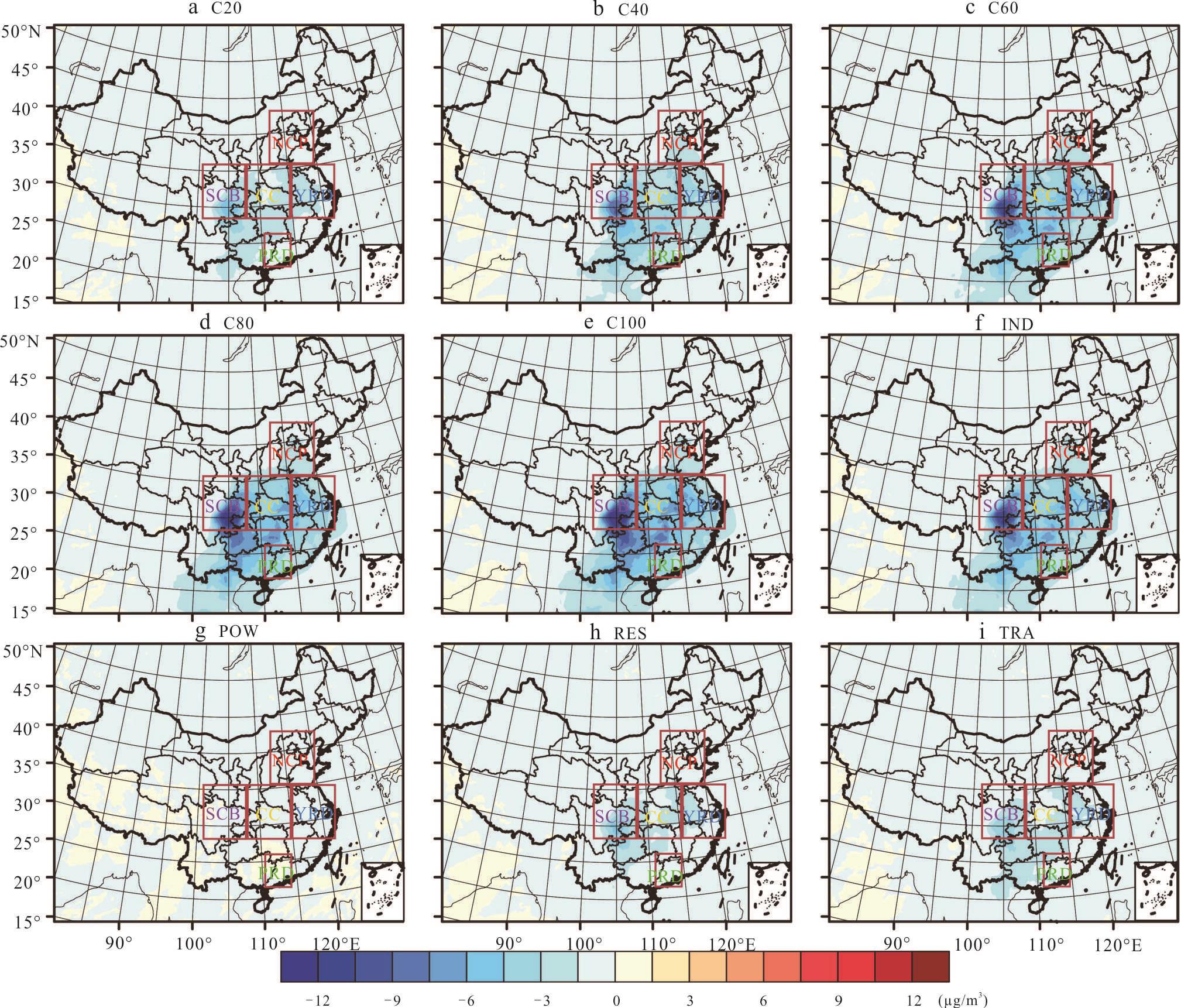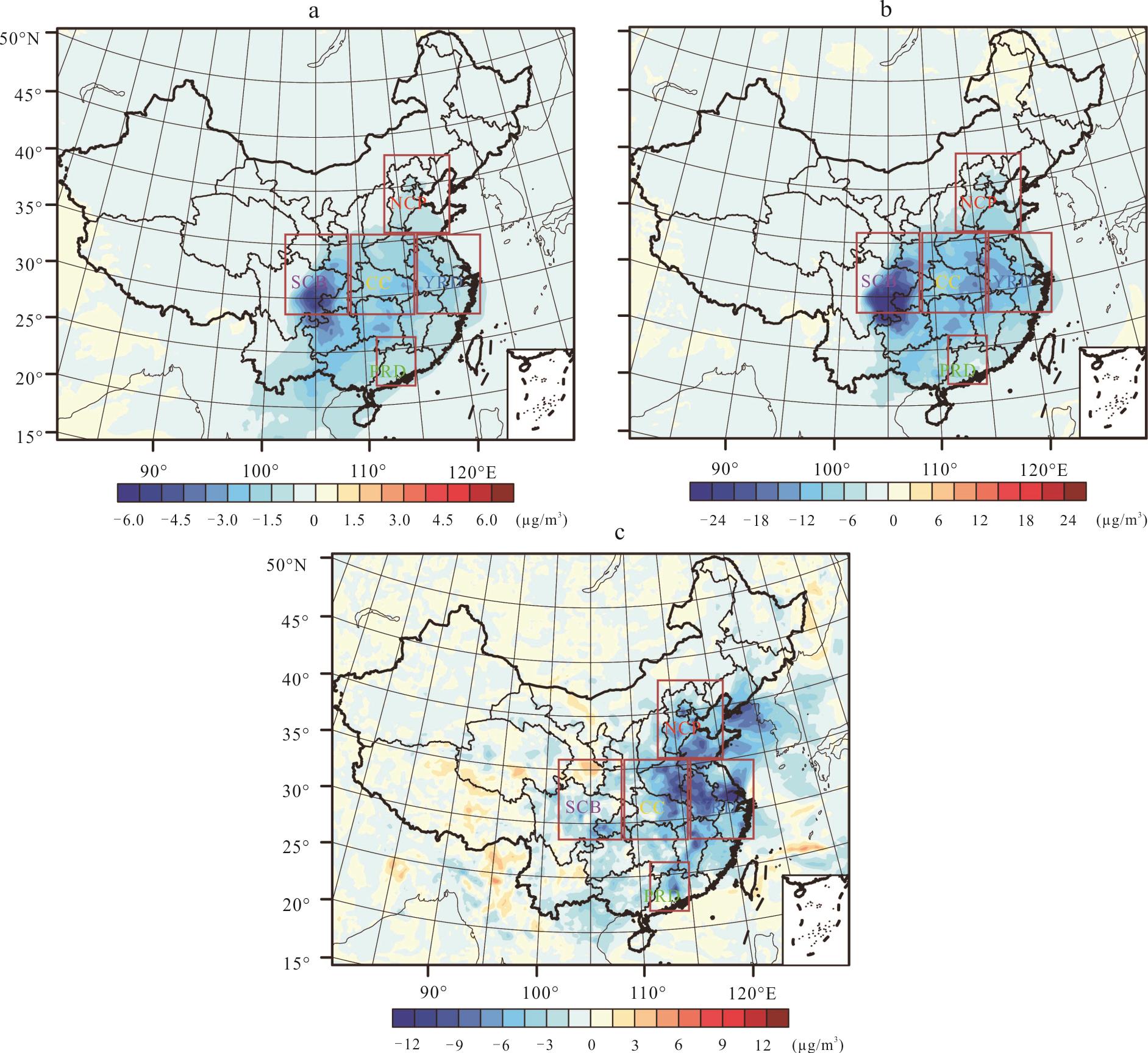 Volatile organic compounds (VOCs) are the important precursors of ozone (O3) and secondary organic aerosols (SOA). However, current research on the mitigation of SOA and O3 by VOCs emission reduction is still insufficient. In this study, based on previous research and policies, a refined VOCs emission reduction potential covering four major emission sources was summarized. The benefits of VOCs emission reduction on SOA and ozone mitigation during the pollution events for five major air pollution regions in China were quantified using the WRF-Chem model. The results showed that the refined VOCs emission reduction strategy could reduce the SOA concentrations by 89.2%, 81.2%, 74.5%, 72.0%, and 77.3% in the North China Plain region, Yangtze River Delta, Central China, Pearl River Delta and Sichuan Basin, respectively. The reduction potential of industrial VOCs emissions is the main contributor to the SOA mitigation in these five regions. Nevertheless, such VOCs emission reduction could only reduce ozone concentration by less than 10%, due to the nonlinear photochemical processes of ozone and its precursors. The refined VOCs emission reduction strategy could reduce the O3 concentrations by 7.55, 9.05, 7.29, 4.31, and 3.15 μg/m3 in five areas, respectively. VOCs emission reduction of industry, transportation and residential could reduce the ozone concentration by 3.6% (3.48 μg/m3), 2.2% (2.07 μg/m3) and 1.1% (0.98 μg/m3), respectively, on average in the five main air pollution regions.