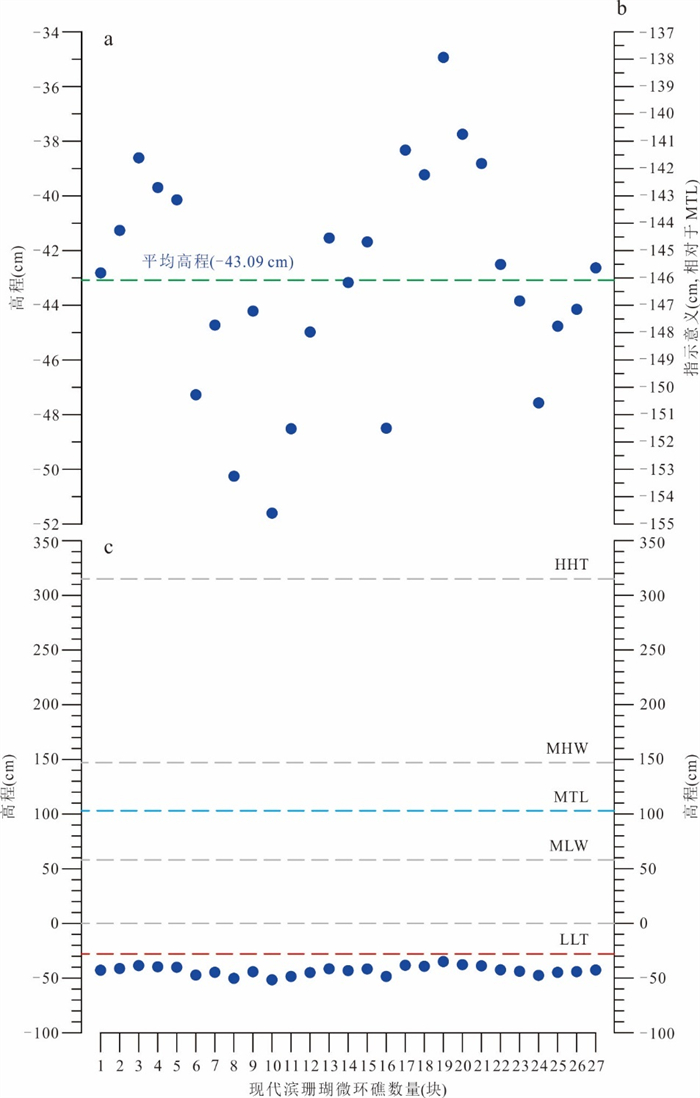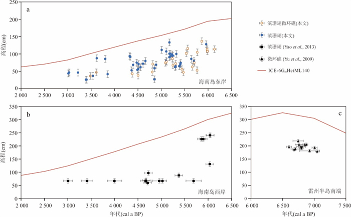 The coral reefs along the Leiqiong Coast in the northern part of the South China Sea are key indicators for studying paleo-sea level changes. However, due to the lack of unified standards, significant spatiotemporal discrepancies exist in coral-derived sea-level data. In this study, through field measurements of the top surface elevation of 27 modern Porites microatolls in the coral reef area of eastern Hainan Island, the sea level indicative meaning of Porites microatolls was first precisely quantified. Meanwhile, 65 published sea-level index proxies based on U-Th dated fossil Porites (microatoll) corals from the region were systematically recalibrated and integrated to reconstruct a more accurate and reliable sea-level change history during the Middle Holocene in the northern South China Sea. The research reveals that those modern Porites colonies with dead upper surfaces but intact overall viability have reached their growth limits. Their top elevation lies 146.09 cm below the mean tide level of Qinglan Port and 15.09 cm below the lowest low tide, and the height difference of the growth limit is only ±8.35 cm, representing a typical developmental pattern of Porites microatolls. It is confirmed that their growth limits are primarily controlled by the lowest low tide level, and they are ideal indicators for reconstructing past sea levels. Sea level reconstruction results indicate that the relative sea level in the northern South China Sea exhibited a fluctuating downward trend from (6 143±34) cal a BP to (3 013±9) cal a BP, ranging from (25.0±9.8) cm to (136.09±9.80) cm. Comparison with sea level records from surrounding South China Sea regions reveals spatiotemporal variations in the timing and magnitude of Middle Holocene high sea-level, which may be attributable to differences in indicator elevation estimation methods and dating techniques. In addition, a comparison of the research results with the sea level predicted by the GIA model (ICE-6G_HetML14), reveals that the Middle and Late Holocene sea-level data at three locations along the Leqiong coast are all below the model curve. This indicates that these regions may have undergone tectonic subsidence over the past several thousand years. The results of this study offer an important scientific basis for predicting the future sea-level change trend in the northern South China Sea, and provide a new perspective on regional tectonic evolution studies.