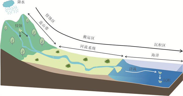 The source-to-sink process in marine sediments is a critical link connecting terrestrial weathering, oceanic dynamics, and global climate change, playing a vital role in reconstructing paleoenvironmental evolution. This paper reviews the transport processes of terrestrial and volcanic materials to the ocean and their control mechanisms. The transport of terrestrial materials is regulated by the lithology-climate-sea level-current system: the nature of the source rocks and climate conditions determine the output and physicochemical properties of the sediments by controlling weathering; sea level changes dominate the distance of sediment transport; and the current pattern determines the final distribution of the sediments. The input of volcanic materials is controlled by the intensity of volcanic activity, climate, hydrology and regional tectonic context. Recent advances in geochemical and mineralogical provenance techniques have significantly improved the identification capacity of sediment sources. However, this field still faces methodological challenges in transitioning from qualitative assessments to quantitative reconstructions. Future research should focus on developing integrated, multidisciplinary approaches to enhance our understanding of the evolution of marine sedimentary source-to-sink systems.