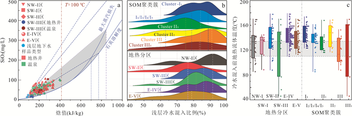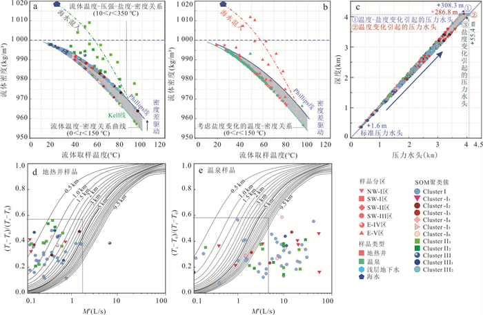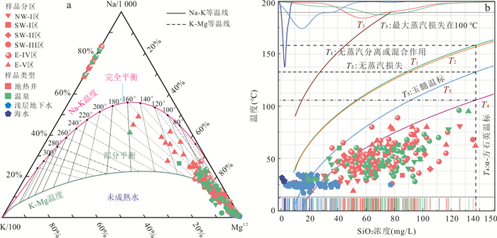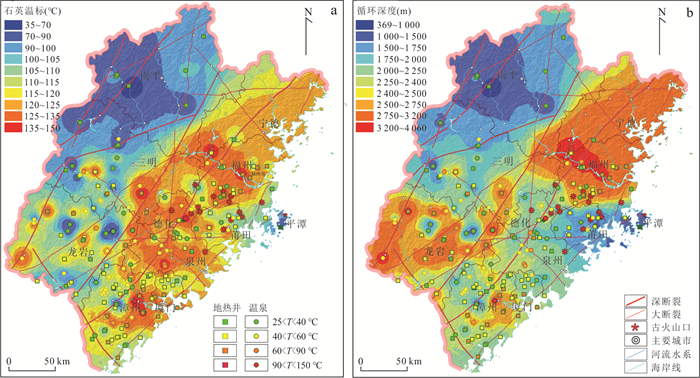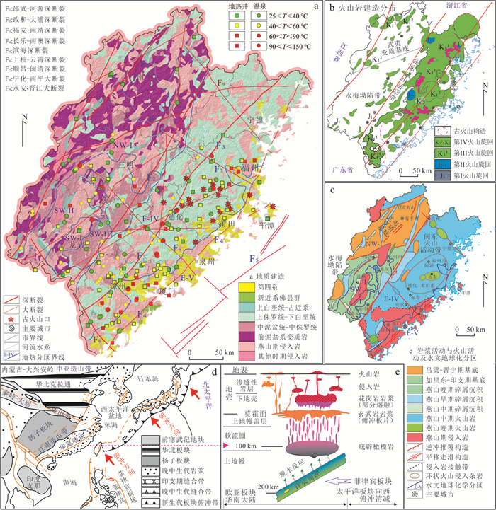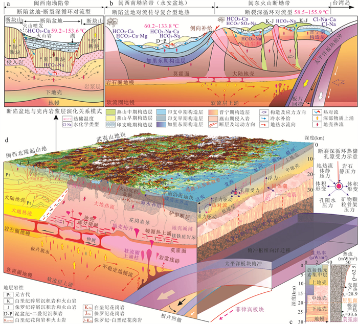 Fujian Province is one of the most important geothermal anomaly areas in the southern margin of China. It is of great significance for the scientific utilization of geothermal resources to reveal the formation mechanisms of geothermal system in the area. The circulation and evolutionary characteristics of geothermal fluid were clarified, and the conceptual formation mode and driving force of hydrothermal system were established in each hydrogeochemical zone based on the implications of hydrochemical and isotopic characteristics of geothermal water samples, GIS spatial analysis, and the overview of regional geothermal geological and crustal thermal structure conditions. The results show that the geothermal system in Fujian Province can be divided into deep circulation convection type of uplifted mountain faults in northwestern region, complex convection conduction hydrothermal type of fault basin in southeastern region, and deep circulation convection type of fault depression zone in eastern and southeastern region. The endowment of geothermal resources in Fujian is controlled by regional tectonics and crustal thermal structure that the geothermal systems of Wuyi uplift zone in western Zhenghe-Dapu fault and the coastal margin zone in eastern Fujian obtained different crust and mantle heat source compositions, but relatively uniform hydrothermal transmission channels. The heat accumulation of the geothermal system in the Wuyi uplift zone is mainly derived by mantle conduction, while the lithospheric thermal structure of eastern volcanic depression zone is the "hot crust-cold mantle" type in which radioactive element decay of intrusive-volcanic rock mass contributed a relatively high amount of crustal heat accumulation. The regional tensile torsional NW faults turned out to be the water conducting channels of geothermal systems, while compression-dominated NE-trending faults were the water-blocking and heat-conducting channels for heat accumulation. The standard head of total geothermal driving force generated by temperature rise and salinity increase in hydrothermal system of northwestern, southwestern, eastern volcanic depression zone and coastal margin region was +218.75 m, +202.24~+250.60 m, +261.72 m and +308.32 m respectively. The Yongmei depression zone in western Fujian, and intersection zones of regional NW and NE deep faults, namely the hydraulic fracture of the faulted basin and the sunken bay extend deep into the mainland, the basement uplift zone of fault basins such as Fuzhou and Zhangzhou basins, intersection zones of regional NE deep faults and ring-shaped volcanic apparatus in eastern Fujian were the optimal target areas for exploitation of medium-high temperature geothermal resources in bulk.