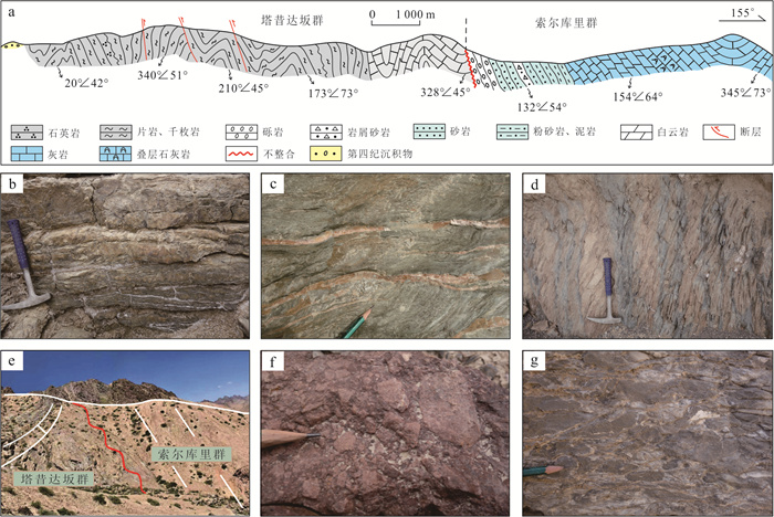 To elucidate the Meso-Neoproterozoic tectonic evolution associated with the amalgamation and breakup of the Rodinia supercontinent in the Altyn Tagh Orogenic Belt, the field geological mapping is conducted and the structural analysis is carried out on the Taxidaban Group (1 080-950 Ma) and Suoerkuli Group (~930 Ma) in the region. The results show that the Taxidaban Group comprises low greenschist-facies para-metamorphic rocks subjected to three phases of deformation: (1) The D1 phase is characterized by pervasive schistosity S1 transposing primary bedding S0; (2) the D2 phase developed WNW-ESE trending folds and crenulation cleavage S2 under NNE-SSW compression; (3) the D3 phase presents as NW-SE directed thrust faults and upright folds induced by SE-NW compression. The Suoerkuli Group unconformably overlies the Taxidaban Group, exhibiting distinct discontinuities in depositional environments and structural deformation between the two units. Integrating lithological compositions, deformation sequences, and spatiotemporal distribution of early Neoproterozoic magmatic rocks with their tectonic settings, this study proposes that the Altyn region completed a tectonic transition from an active continental margin to post-collisional extension during the late Mesoproterozoic to early Neoproterozoic. The findings provide critical evidence for constraining its relationship with Rodinia supercontinent cycles and paleogeographic affinity.