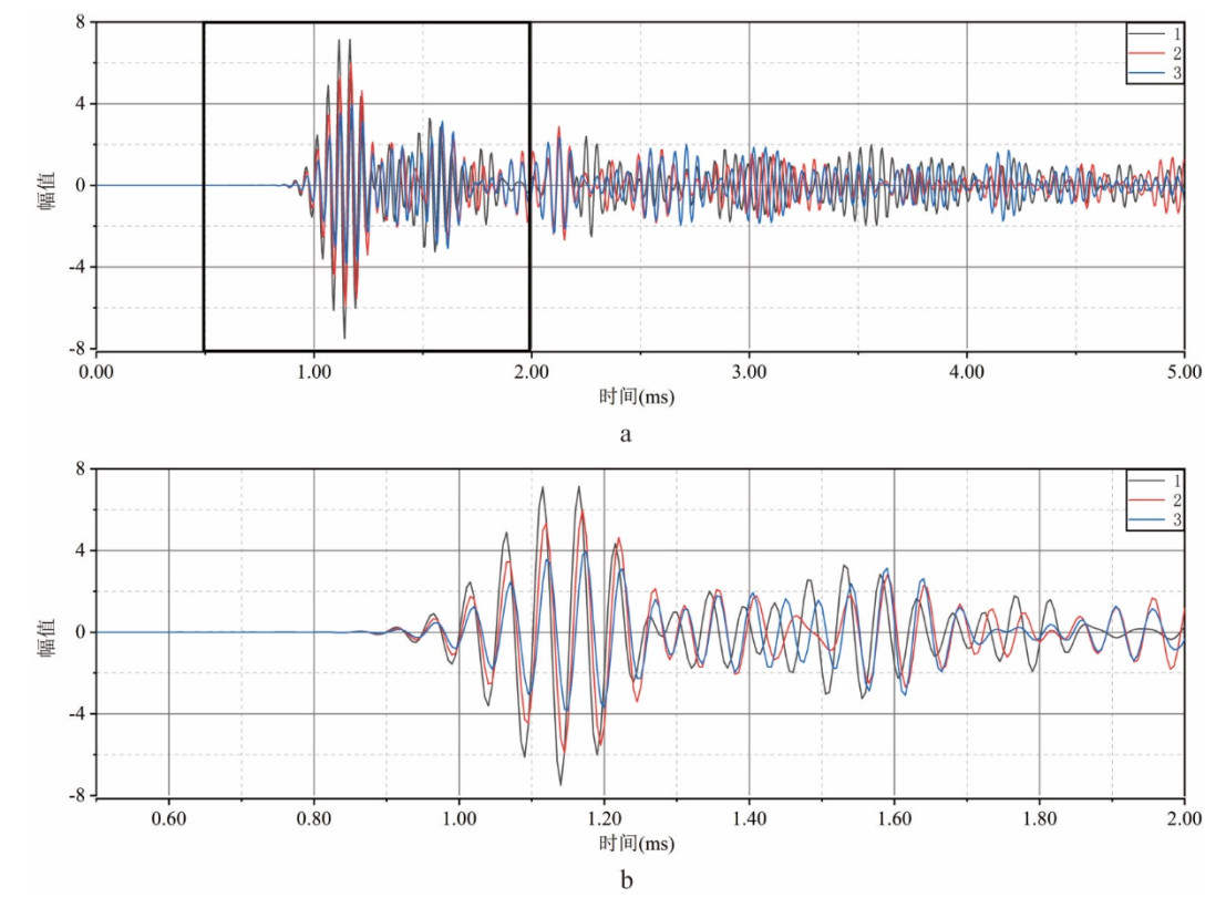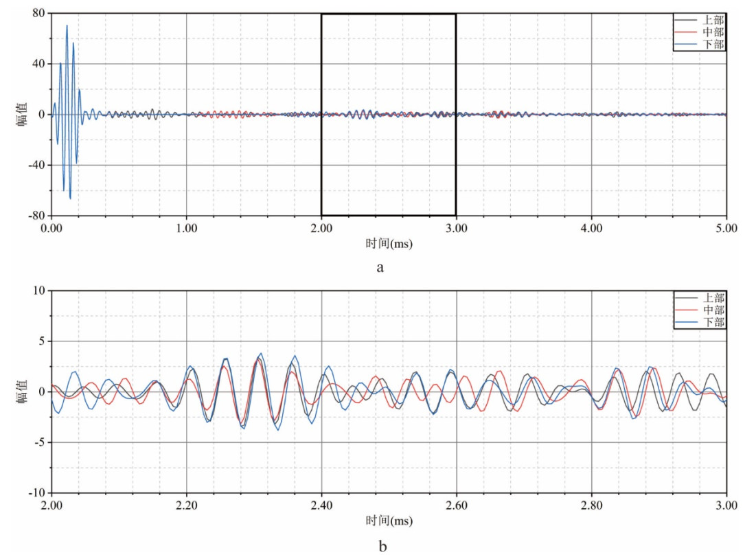 In order to quantitatively detect the internal defects of anchor, it is proposed to use the finite element method to simulate the propagation process of the ultrasonic guided wave in the defective anchor, and to use the improved adaptive noise complete ensemble empirical mode decomposition (ICEEMDAN) method to process the ultrasonic guided wave reflection signal. Then, according to the peak value in the decomposed intrinsic mode function (IMF), the arrival time of the defect reflection wave is obtained, based on which the position and length of the anchorage defects are evaluated. A series of parameter analyses show that the defect location deduced based on the proposed method is in good agreement with the actual situation, and the calculation error of single defect length is within 3.3%, and the calculation error of multiple defect length is less than 10%. Hence, the ultrasonic guided wave method based on ICEEMDAN can be used as an effective means to detect the internal defects of the bolt.