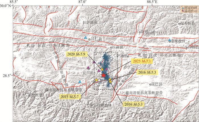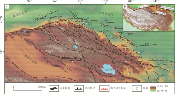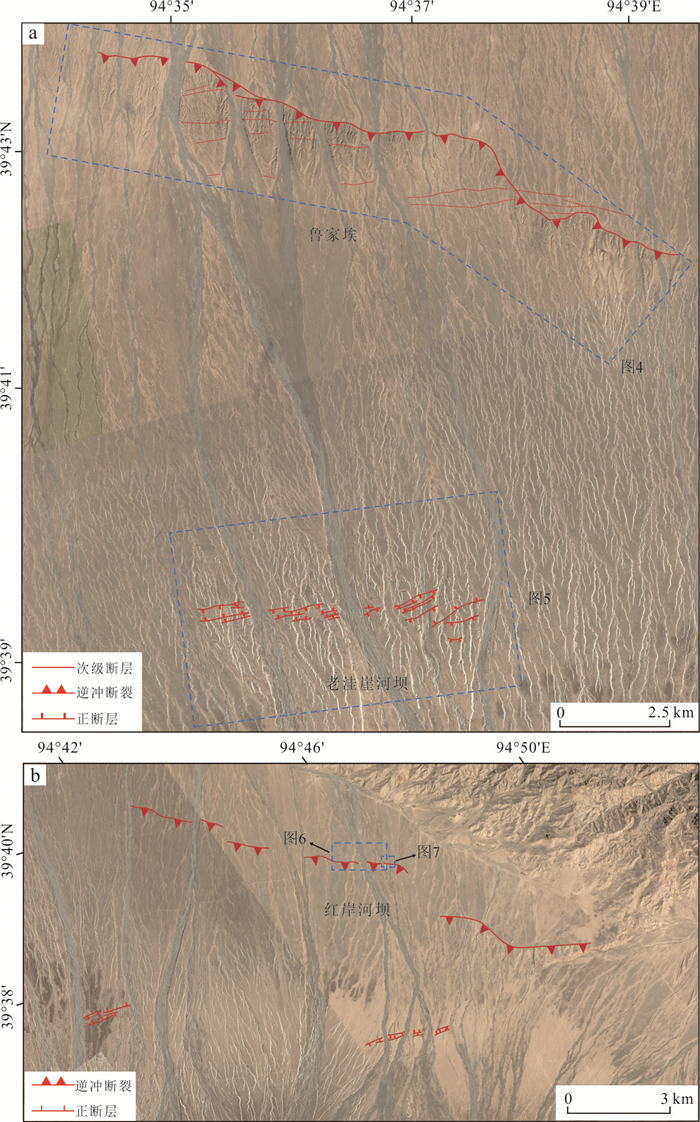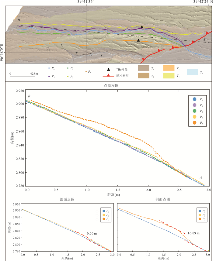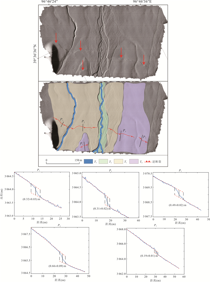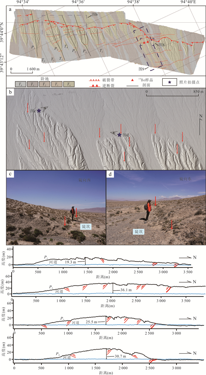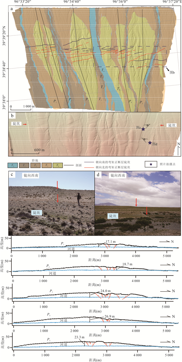 Located at the northern edge of the Qinghai-Tibet Plateau and the western end of the Qilian Mountains, the Shibaocheng-Changma Basin and its surrounding areas are characterized by numerous active tectonic features and intense tectonic activity. Among these, the Shibaocheng-Yingzuishan Fault Zone, as the largest reverse fault-fold belt in the basin, exhibits complex tectonic deformation patterns and distinct fault dislocation landforms. This region is an ideal area for studying basin-mountain tectonic deformation and its deep-shallow tectonic relationships, as well as for understanding the tectonic conversion relationships between different faults and crustal shortening patterns. This study employs high-precision unmanned aerial vehicle (UAV) Structure-from-Motion (SfM) photogrammetry techniques, combined with field survey results, to conduct a detailed interpretation of faulted landforms. It analyzes the latest activity characteristics and tectonic deformation patterns of the Daxue Shan Bei Shan Fault within the eastern segment of the Yingzuishan Fault. It also employs cosmogenic nuclide dating methods to age-date key faulted landforms, and further calculates the Late Quaternary deformation rates through analyses of the deformation patterns and deformation amounts of multi-level terraces and their corresponding landform surfaces. The research results indicate that the Daxue Shan Bei Shan Fault consists of two rows of faults. The thrusting action of the front-edge fault has formed multiple reverse fault-fold belts within the basin, while the rear-edge fault has developed bend-moment normal faults associated with fold, forming a typical reverse fault-normal fold combination. Fault activity caused the front-edge fault (Lujiaai segment) terraces T3 and T4 to experience vertical displacements of (6.56±0.34) m and (16.09±1.13) m, respectively. Based on terrace age calculations, the vertical slip rate of this fault segment is approximately (0.15±0.01) mm/a, with a horizontal shortening rate of approximately (0.12±0.02) mm/a and the overall thrust rate is approximately (0.19±0.03) mm/a. The deep slip surface extends southward to Daxue Shan Fault at a depth of approximately (2.7±0.5) km, forming a typical thin-skinned reverse fault-fold deformation zone, which is the result of the fault system's forward-extending compression and expansion into the basin interior.