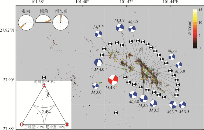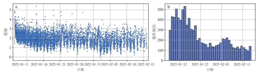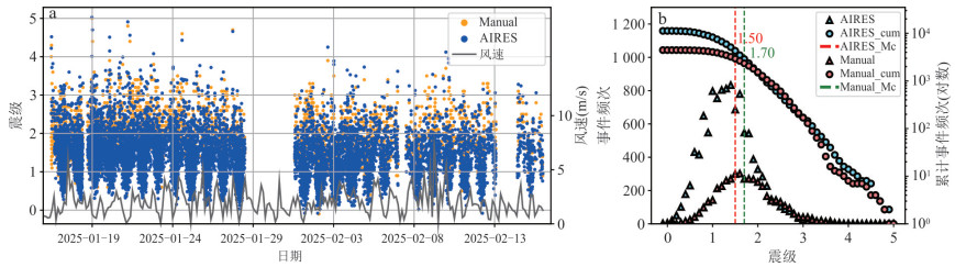 To investigate the characteristics of the 2017 ML4.9/MS4.4 earthquake sequence in Muli, Sichuan, an end-to-end framework, involving raw continuous seismic waveform data processing to seismic phase detection, earthquake event identification, and earthquake location, was constructed based on lightweight artificial intelligence methods, template matching techniques, and earthquake location methods. This system was used to process raw waveform data from 28 stations within a 60 km radius of the epicentral area between September 1 and 30, 2017, reconstructing a high-resolution seismic catalog containing 9 252 foreshocks, mainshocks, and aftershocks. Based on focal mechanism solutions of 43 ML≥2.5 earthquakes, it conducted a comprehensive analysis of the seismicity patterns.The refined catalog exhibits enhanced consistency with Gutenberg-Richter magnitude-frequency statistics and clearly delineates spatiotemporal evolutionary features.The seismic sequence occurred within a complex NW-SE trending strike-slip fault system bounded by the Jinpingshan Fault, with the bilateral expansion of events from the mainshock toward the NW and SE, and it was preliminarily attributed to driving by afterslip.