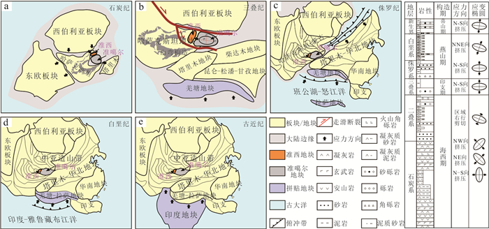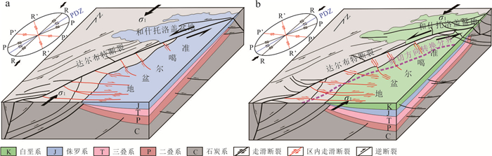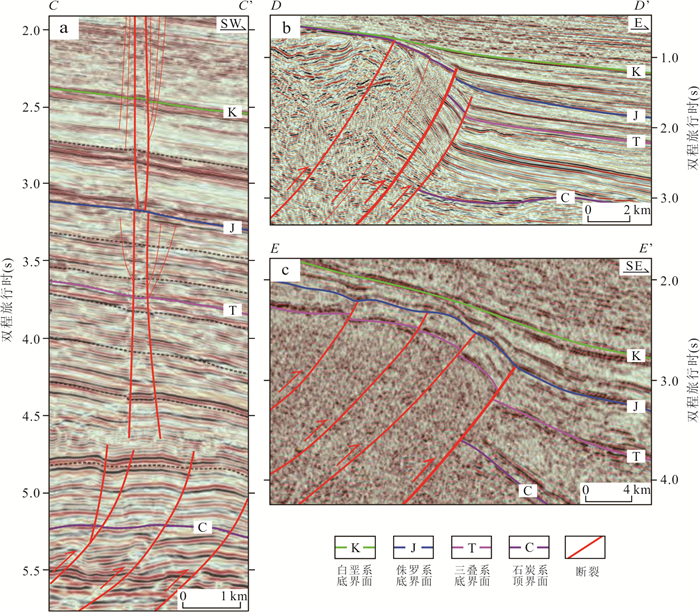 The western Junggar Basin (WJB) has undergone multi-stage tectonic evolution. However, there are still uncertainties regarding the deformation timing, reactivation dynamics, and reservoir-controlling effect of complex faults within the WJB, which restricts oil and gas evaluation and exploration efforts. In this paper, it clarified the development characteristics and reservoir-controlling mechanisms of faults at different stages through integrated structural analysis of intra-basin seismic data and basin-margin field outcrops. The research shows that the WJB has mainly undergone four stages of deformation, each controlled by differential dynamic settings. During the Hercynian, multi-directional plate collisions and compressions generated multi-episode thrust-nappe faults, including N-striking brittle-ductile, NW-striking ductile-brittle, and NE-striking brittle faults. During the Indosinian, thrust-transpressional faults developed in the WJB, driven by the counterclockwise rotation of the Junggar Block and EW-directed compression, with basin-margin dextral transpressional faults and near EW-striking conjugate shear faults formed. During the Yanshanian, the NNE-directed subduction of the Bangong-Nujiang Ocean and the subsequent Lhasa Block collision drove left-lateral strike-slip shearing of the Darbut Fault Zone, and its Riedel shears derived NW-striking and E-striking dextral secondary strike-slip faults. During the Himalayan, the rapid uplift of the North Tianshan Mountains, driven by the India-Eurasia continental collision, triggered the rapid southward tilting of the WJB, generating extensional normal faults within the WJB. In terms of hydrocarbon geological significance, Hercynian thrust-nappe faults were later intensely filled with hydrothermal fluids, forming boundaries that seal oil and gas in deep formations, and basic traps such as faulted anticlines and fault blocks developed concurrently. The Indosinian "fault-fault" migration system transported oil and gas from source rock areas to the Carboniferous, forming two types of paleo-oil reservoirs in the Carboniferous, namely weathered crust reservoirs and interior reservoirs, and developing composite traps concurrently.Yanshanian reticular faults dominated ultra-long-distance westward oil and gas migration, and differential strike-slip movement promoted the migration and accumulation of some oil and gas into the overlying Jurassic-Cretaceous strata. Himalayan normal faults channeled deep oil and gas upward to adjust and accumulate in the Neogene, with the concurrent formation of structural-stratigraphic traps. Multi-stage faults regulated differential hydrocarbon accumulation through reservoir modification, vertical-horizontal migration, and paleo-reservoir adjustment. The vertically ordered superimposition of multiple oil-bearing intervals forms a stereoscopic exploration framework, providing theoretical support for hydrocarbon exploration breakthroughs in the WJB.