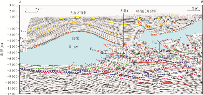 Overthrust belt is of significant importance for hydrocarbon exploration. To elucidate the characteristics and formation mechanisms of the subsalt overthrust belts in the middle Kelasu structural belt, Kuqa Depression, it conducted detailed seismic profile interpretation combined with discrete element numerical modeling. The results reveal the development of two major subsalt overthrust belts, Bozi 25 and Keshen 5 West, in the middle Kelasu structural belt, and demonstrate that their spatial distribution is closely coupled with the Paleogene salt-lake distribution and pre-existing salt diapiric structures. The frontal uplift separating the two salt lakes, where abrupt variations in gypsum-salt layer thickness occur, acts as a stress concentration zone which facilitates the preferential propagation of large-scale overthrust structures. Moreover, the progressive growth of salt diapirs provides additional accommodation space for the development of these large-scale overthrust systems. These findings highlight the footwalls of overthrust structures as key targets for future hydrocarbon exploration and for identifying or re-evaluating Bashijiqike Formation traps within the Kelasu structural belt.