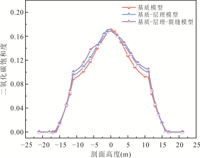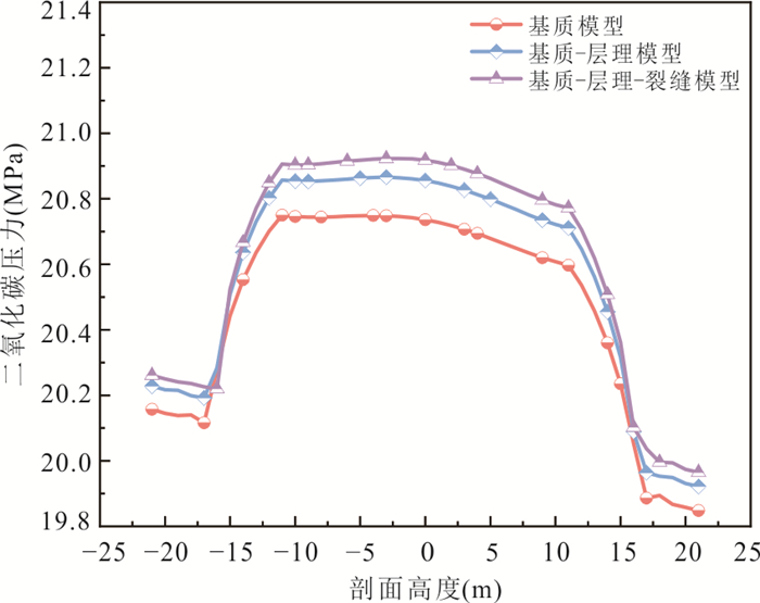 Fractures serve as the primary storage space and seepage pathways for CO2 geological storage, directly influencing storage efficiency and long-term containment security. This study employed UAV oblique photogrammetry to construct a discrete fracture network (DFN) model of a fractured sandstone reservoir within the Ordos Basin. Subsequently, a fluid-solid coupling numerical model for CO2-water two-phase flow was established using the multiphysics simulation software COMSOL Multiphysics, explicitly accounting for the matrix-bedding-fracture system. Key findings reveal that CO2 preferentially migrates along high-permeability bedding planes and fractures. Horizontal bedding, combined with low-dip, low-connectivity natural fractures, impedes vertical seepage, thereby reducing the risk of CO2 escape into the caprock. The fracture network accelerates pressure transmission, inducing significant displacement responses. The initial rate of displacement increase was found to be 6.2 times higher than that observed in the matrix model. Consequently, accurately representing the multi-porosity system encompassing the matrix, bedding, and fractures is crucial for assessing the stability of CO2 geological storage.