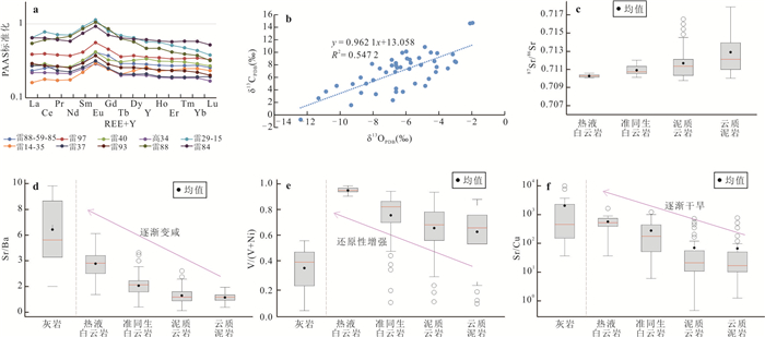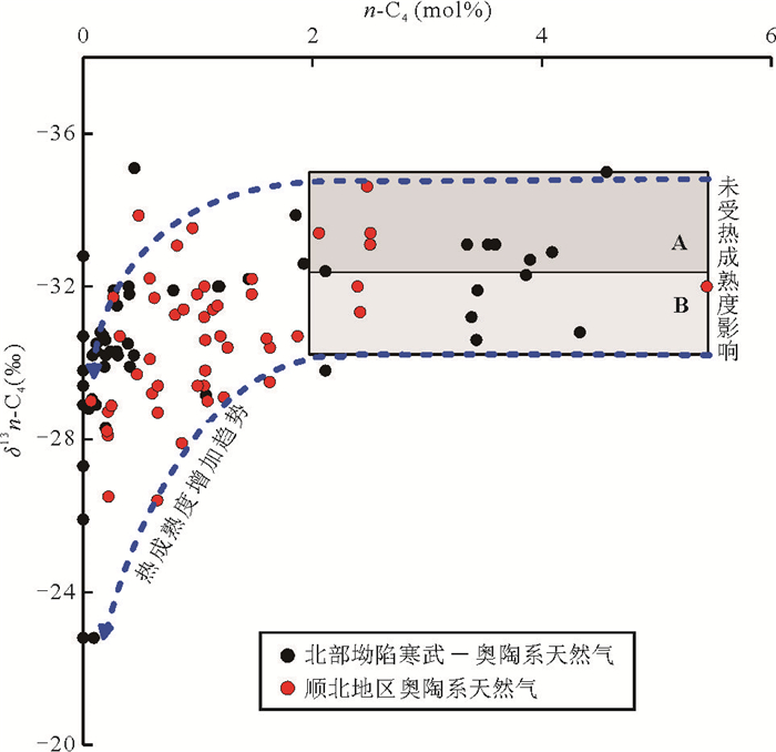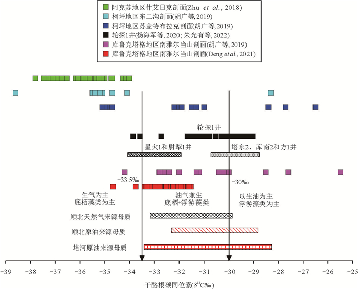 The source rocks of the Lower Cambrian Yurtus Formation have been considered as the main source rocks of marine oil and gas in the Tarim Basin. Currently, the understanding of source rocks of Yurtus Formation is mainly based on the sample analysis in outcrops in the basin margin and drilling core samples in uplift areas of the basin, while the characteristics of source rocks in slope and depression areas are less understood. Understanding the carbon isotope characteristics of kerogen in source rocks of Yurtus formation is of great reference significance for determining the hydrocarbon generation mechanism of source rocks and establishing the correlation between oil and gas sources. In this paper, the organic geochemistry and carbon isotope geochemistry of Ordovician crude oil and natural gas samples from different fault zones in Shunbei area are studied in detail. Based on the quantitative evaluation of the influence of thermal maturity on carbon isotopes of crude oil and natural gas, the initial carbon isotope composition of crude oil and natural gas is reconstructed. The carbon isotopic composition of kerogen from crude oil and natural gas in Shunbei area was recovered by the fractionation between kerogen and oil and gas during hydrocarbon formation. The results show that the carbon isotopes of oil-derived kerogen are mainly in the range of -32.3‰ to -28.8‰, and that of gas-derived kerogen is mainly in the range of -33.1‰ to -29.8‰. The crude oil and natural gas are mainly derived from the mixed source of benthic algae and planktonic algae, and part of crude oils in the Shunbei area are also from the main source of planktonic algae. The light carbon isotope characteristics of kerogen indicate that the oil and gas in Shunbei area mainly come from the source rocks of Yurtus Formation. Based on changes in the assemblage of hydrocarbon forming organisms, the source rocks of Yurtus Formation are divided into oil-generating source rocks with planktonic algae as the main source (δ13C > -30‰), oil-gas generating source rocks with benthic and planktonic algae as the main source (-33.5‰ < δ13C < -30‰) and gas-generating source rocks with benthic algae as the main source (δ13C < -33.5‰). With the increase of thermal maturity of source rocks, the early oil is generated by planktic algae, while the late oil (mainly volatile oil-condensate oil) contributes more, resulting in the early oil isotope is heavier, while the late oil has relatively light carbon isotope characteristics. At the same time, the content of oil source kerogen gradually decreases, while the relative content of gas kerogen (benthic algae) gradually increases, and the total carbon isotope of kerogen in source rocks gradually becomes lighter. Therefore, the different source rock types and hydrocarbon generation processes of kerogens from different sources leads to the complex carbon isotope characteristics of the oil and gas generated from the source rocks of Yurtus Formation (such as the reversal of carbon isotope of the components of the reservoir crude oil group, the reversal of carbon isotope between the chloroform extract of the source rock and kerogen, etc.). The research results can provide a new constraint for the prediction of ultra-deep oil and gas phase state in Tarim Basin.