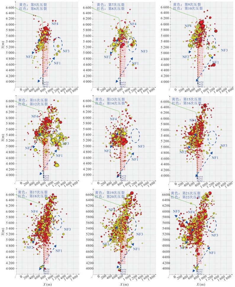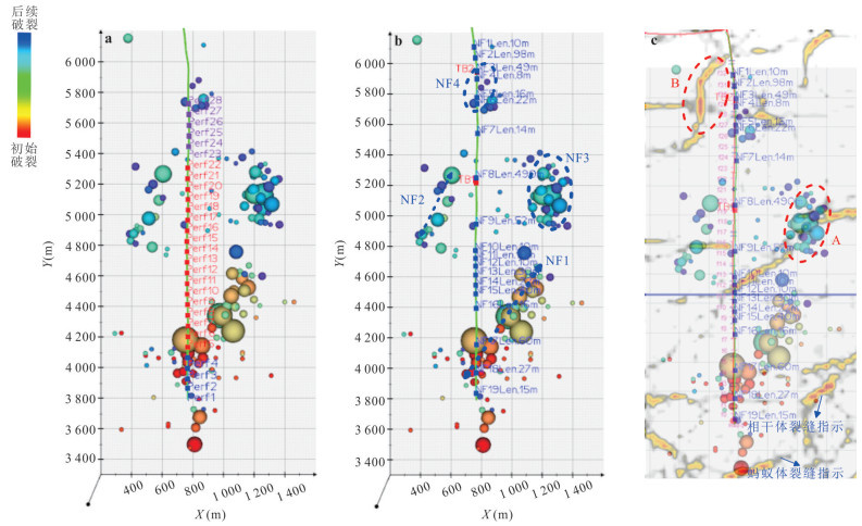 Due to the modification by ultra-long section and multi-stage complex geological tectonic processes, pre-existing fractures and faults are extremely developed in the southern Sichuan shale, which not only reduce fracturing efficiency but also cause casing deformation and increased economic losses; therefore, for high-risk well segments with extremely developed natural fractures, a multi-stage merged ultra-long stage fracturing mode is implemented to avoid fracturing risks and improve fracturing effectiveness. This study focuses on a well with highly developed fractures in the Weiyuan shale of the Sichuan basin, where pre-existing fractures of various scales are extremely developed throughout the wellbore, indicating significant casing deformation risk during hydraulic fracturing, and after actual casing deformation occurred during hydraulic fracturing, the fracturing plan was adjusted immediately by merging 18 stages into an ultra-long segment of 1 168 m, with 18 fracturing and temporary plugging operations performed on this segment. Based on large-array surface microseismic monitoring, this study characterizes the spatiotemporal propagation characteristics and focal mechanisms of fracture activities, and combined with integrated geological-engineering analysis of microseismic data, 3D seismic data, geological surveys, and logging data, clarifies the implementation effect of ultra-long stage hydraulic fracturing, demonstrating that ultra-long stage hydraulic fracturing can reduce the risk of casing deformation in high-risk areas to a certain extent, though highly fractured zones may act as leakage channels for fracturing fluids in ultra-long stages, leading to insufficient stimulation, while adjusting real-time segmentation and fracturing plans for ultra-longsection fracturing based on microseismic responses is beneficial for both reducing casing deformation risks and improving fracturing stimulation effectiveness.