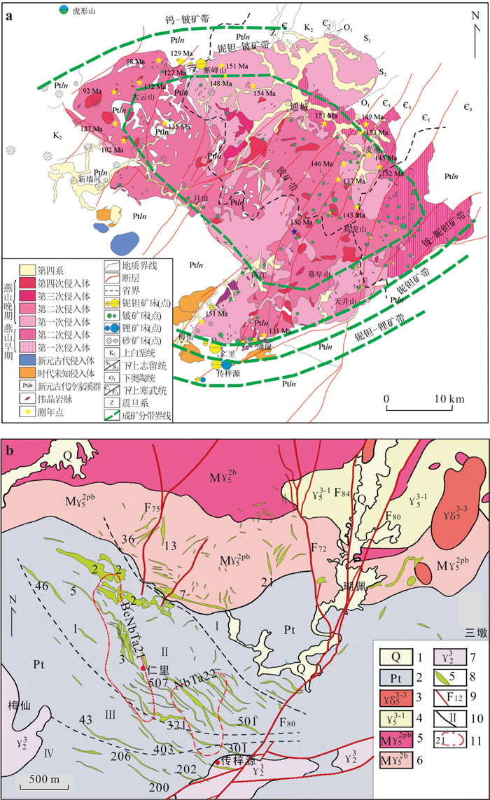 Many recent studies indicate that the relationship between granitic pegmatite and granite is complex and can be summarized simply into four types: "Father-son relationship", i.e. granitic pegmatites are the late products of highly differentiated and evolved granitic magma; "Brotherly relationship", granitic pegmatite and granite are the products of simultaneous or near-simultaneous independent crystallization of magma with similar compositions; "Indirect relationship", formation of rare metal pegmatites through multi-stage partial melting of source granite; "No relationship between granitic pegmatite and granite", relative big time-gap and different source materials for pegmatite and granite are displayed in many pegmatite fields, and anatectic individual pegmatite magma is a reasonable genetic model. Crystal mush reservoir and trans-crustal magmatic system are the important for understanding the relationship between pegmatite and granite. Inheritance (or detrital) minerals for dating and isobaric interference for analysis of hafnium isotopic composition should be pay more attention for the study on the relationship between pegmatite and granite. The establishment and development of techniques and reference materials for isotopic dating need to be enhanced. The study on characteristics and mechanism of non-traditional isotope fractionation during the differentiation and evolution of granitic magma should be strengthened. Petro-geochemical analysis and large-scale mapping of the granite batholith are suggested in order to give more valid evidences for the rare metal pegmatite exploration.