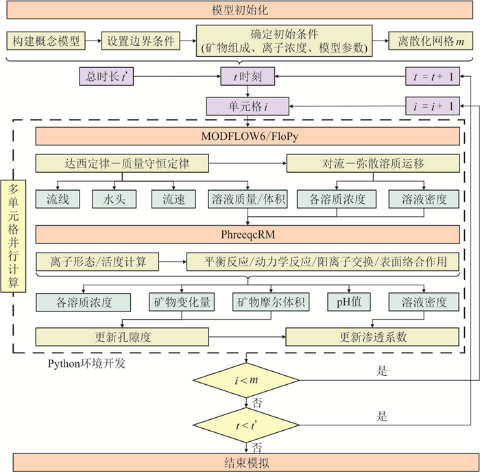 Artificial solution mining technology, which converts evaporite minerals in brine aquifers into brine, is crucial for the sustainable development of salt lake resources. However, the dynamic evolution of aquifer hydraulic conductivity induced by mineral dissolution during water injection remains insufficiently understood, hindering accurate process prediction. In this study, a Python-based modeling tool, MF6PQC, coupling MODFLOW6 and PhreeqcRM, was developed to systematically investigate the effects of reactive transport on the hydraulic conductivity of brine aquifers and the overall solution mining process. Simulation results show that aquifer heterogeneity governs the spatiotemporal evolution of hydraulic conductivity. During the early stage of dissolution mining, hydrogeochemical reactions preferentially occur in high permeability zones. The dissolution of highly reactive minerals such as carnallite significantly enhances porosity and hydraulic conductivity, ultimately forming preferential flow paths driven by positive advection-dispersion feedback. Relatively homogeneous aquifers or those with extensive, well-connected high-permeability zones facilitate uniform lixiviant distribution and achieve higher solid-to-liquid conversion efficiency. In contrast, strongly preferential or poorly connected formations interrupted by low permeability barriers limit mineral contact and dissolution, thereby reducing overall solution mining efficiency. This study deepens the understanding of hydraulic conductivity evolution in brine aquifers during water injection and provides a theoretical basis for optimizing salt lake brine resource exploitation.